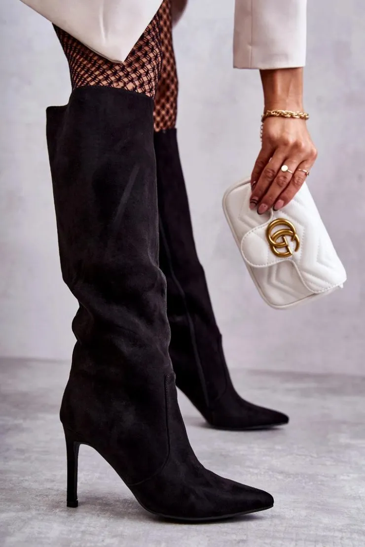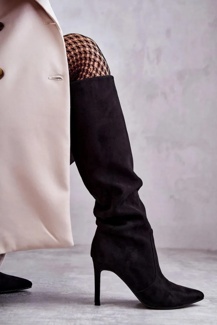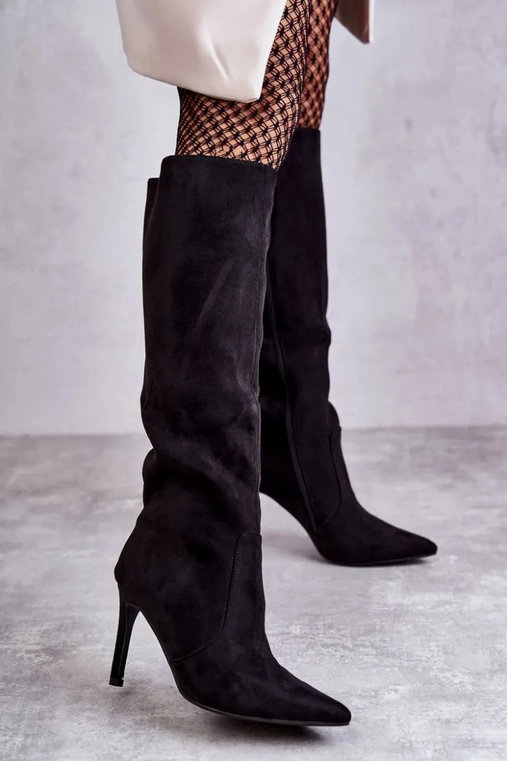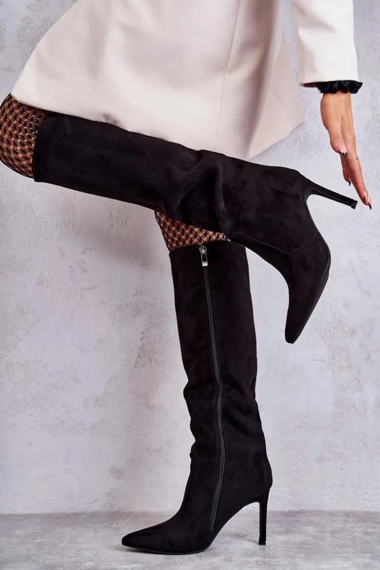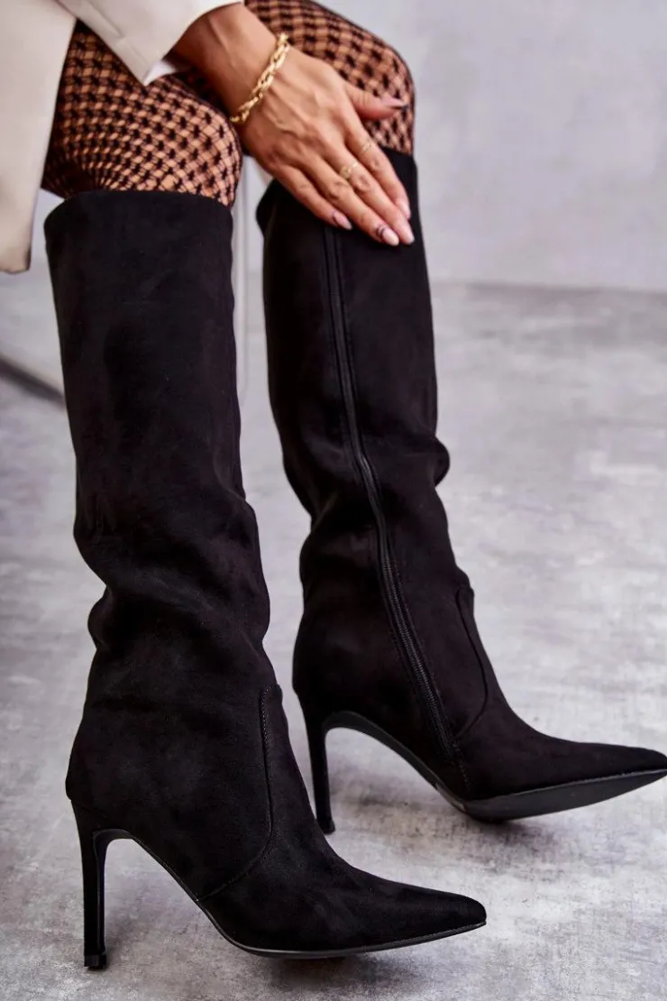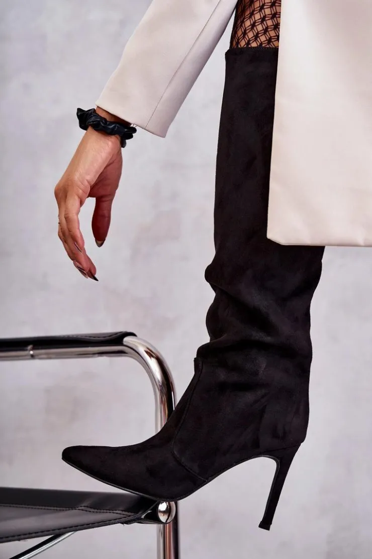 Piękne, klasyczne kozaki damskie wykonane z przyjemnego w dotyku eko zamszu. Posiadają na całej długości suwak ułatwiający zakładanie obuwia. Buty osadzone na obcasie w postaci szpilki z noskiem w szpic świetnie wysmuklą nogi. Posiadają ocieplenie w postaci koca obuwniczego. Zapiętek w tych kozakach jest usztywniany. Model ten powinien znaleźć się w Twojej szafie! Przy wyborze rozmiaru prosimy sugerować się tabelą rozmiarów.