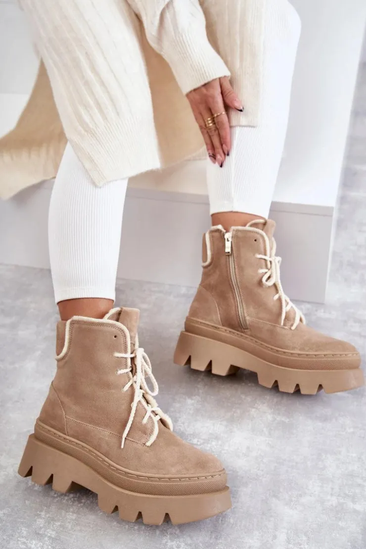 Botki damskie o klasycznym fasonie świetnie sprawdzą się na jesienne, chłodne dni. Posiadają wewnątrz ocieplenie w postaci koca obuwniczego. Osadzone na płaskim, stabilnym obcasie ze żłobieniami. Dodatkowo posiadają usztywniany zapiętek. Model z suwakiem na boku cholewki oraz sznurowaniem. Botki doskonale sprawdzą się w wielu stylizacjach. Przy wyborze rozmiaru prosimy sugerować się tabelą rozmiarów.