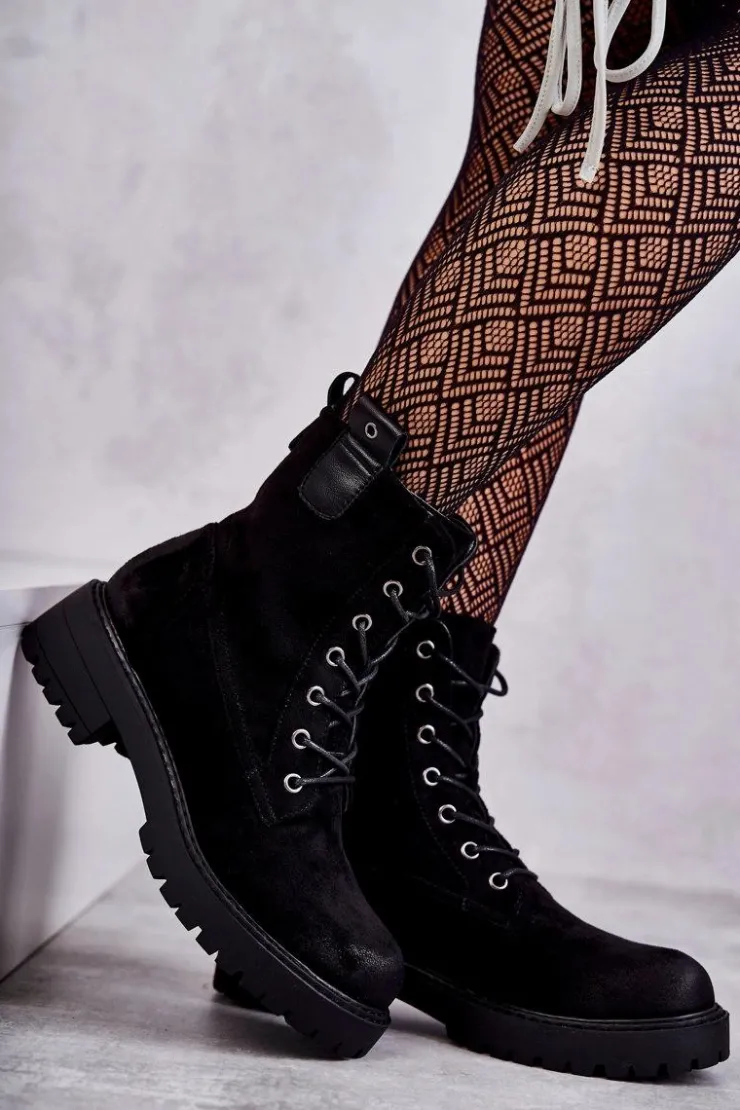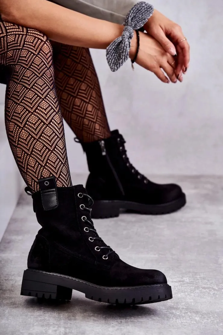 Botki damskie o klasycznym fasonie świetnie sprawdzą się na jesienne, chłodne dni. Posiadają wewnątrz ocieplenie w postaci koca obuwniczego. Osadzone na płaskim, stabilnym obcasie ze żłobieniami. Dodatkowo posiadają usztywniany zapiętek. Model z suwakiem na boku cholewki oraz sznurowaniem. Idealny model do pracy czy szkoły. Przy wyborze rozmiaru prosimy sugerować się tabelą rozmiarów.