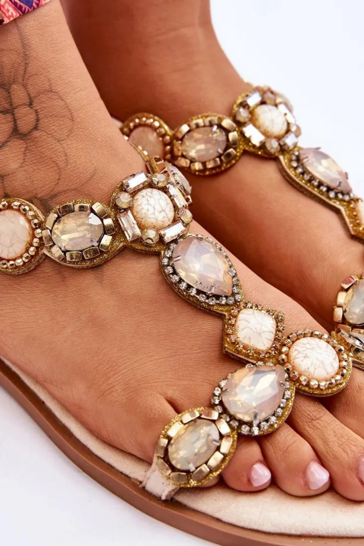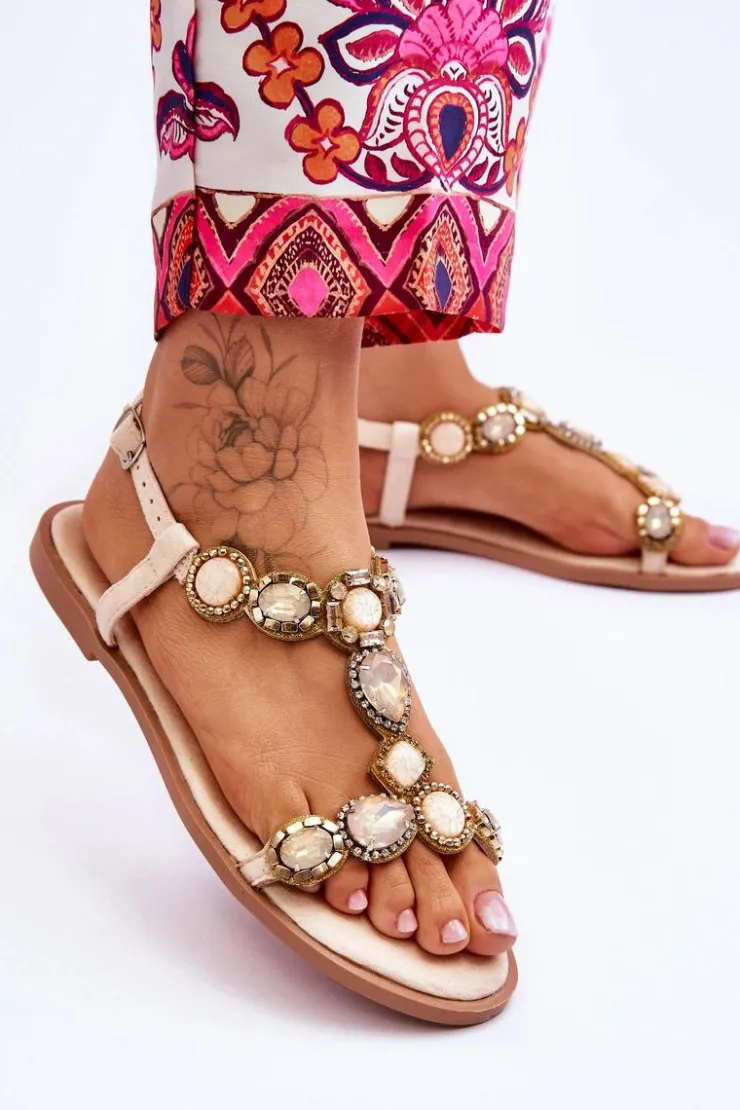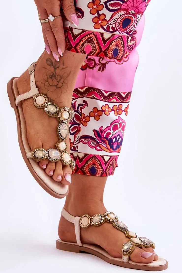 Damskie Boto Zamszowe Płaskie Sandały Z Kamieniami Beżowe Dallas