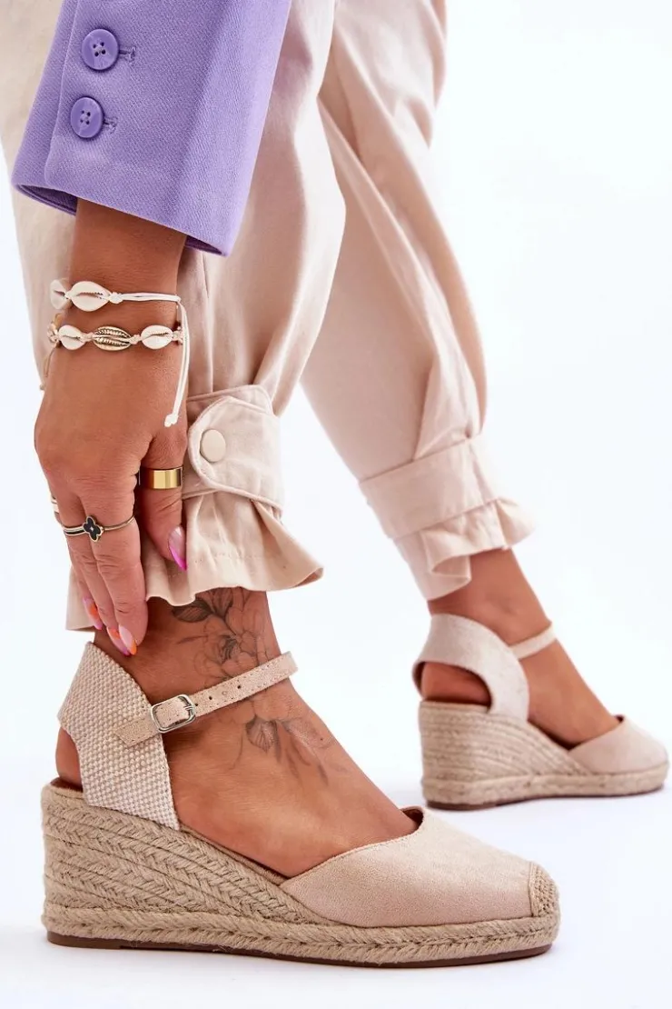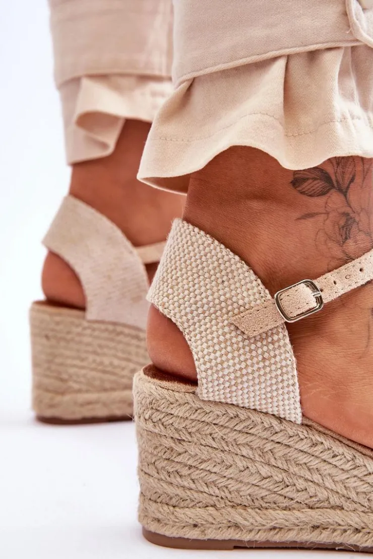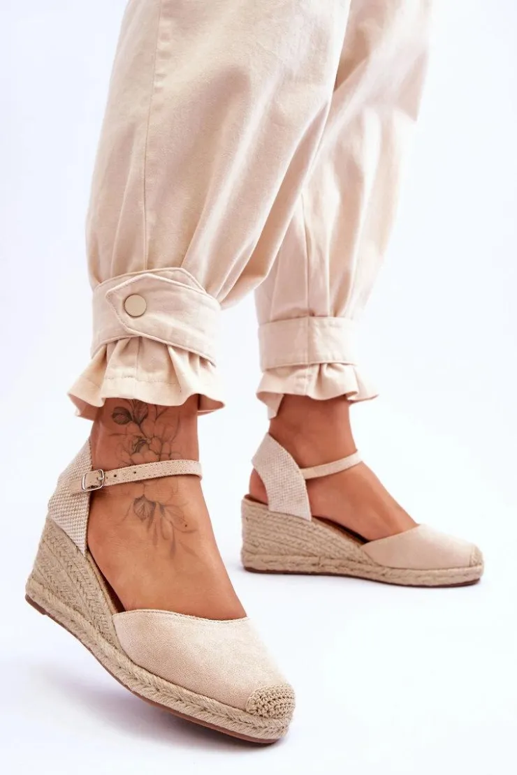 Damskie Boto Zamszowe Sandałki Espadryle Na Koturnie Beżowe Cammer