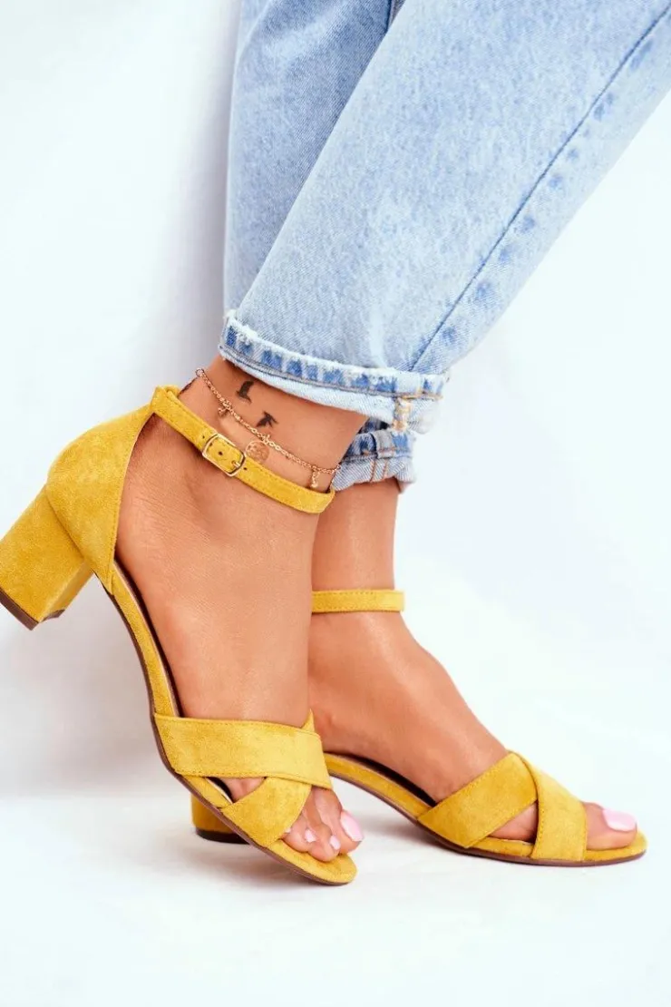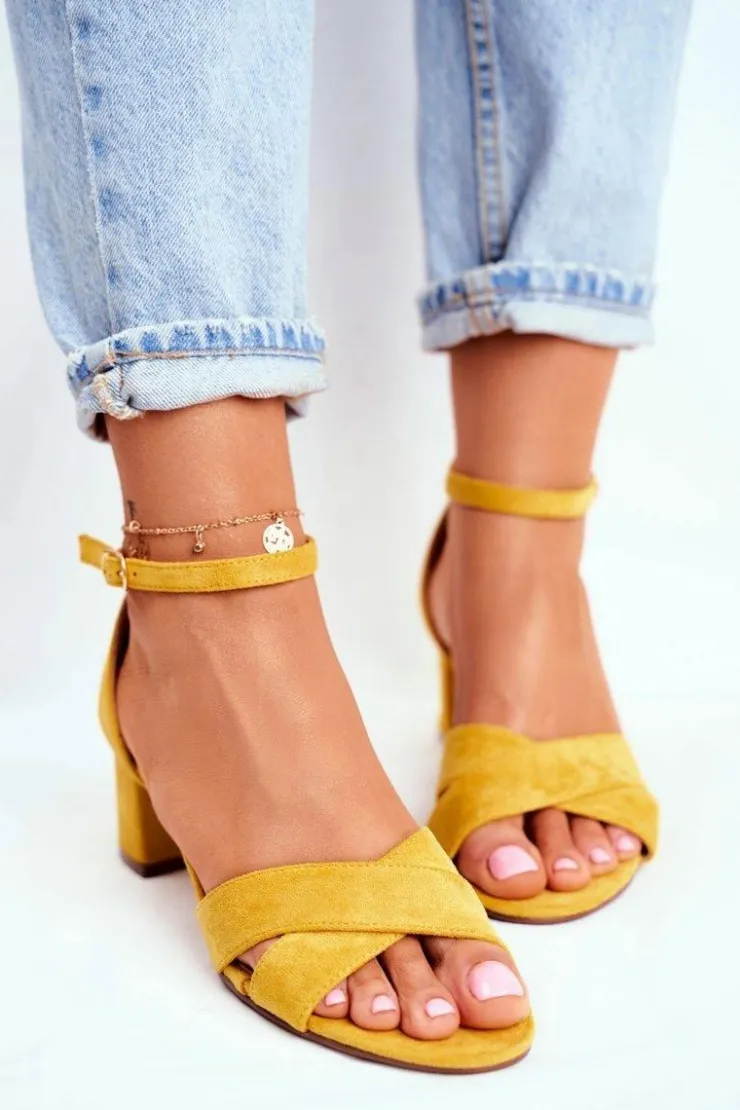 Damskie Boto Zamszowe Sandałki na Słupku Żółte Nela