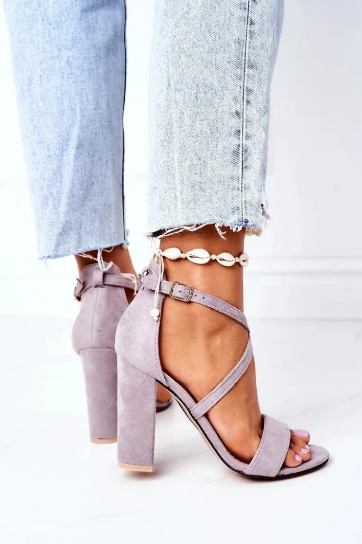 Damskie Boto Zamszowe Sandały Na Słupku Szare Dance With Me