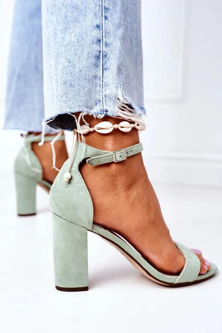 Eleganckie sandały na słupku wykonane z eko zamszu. Miękka wkładka z eko skóry oraz wygodny obcas zapewnią komfort. Przy wyborze rozmiaru prosimy sugerować się tabelą rozmiarów.