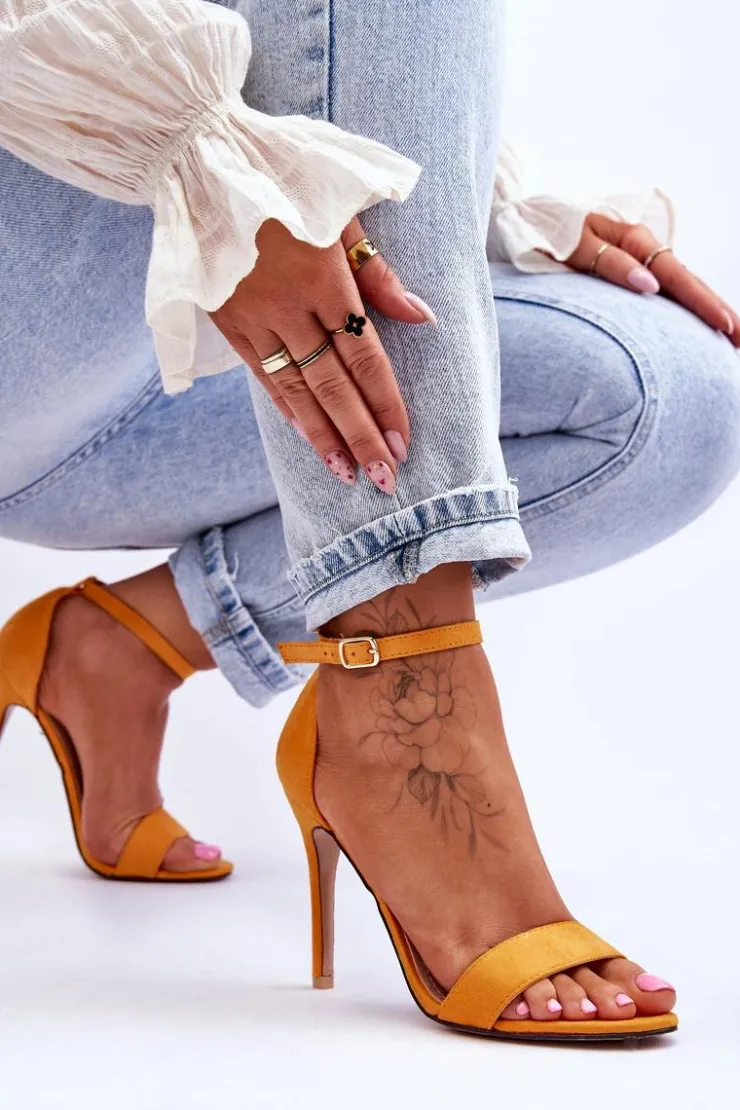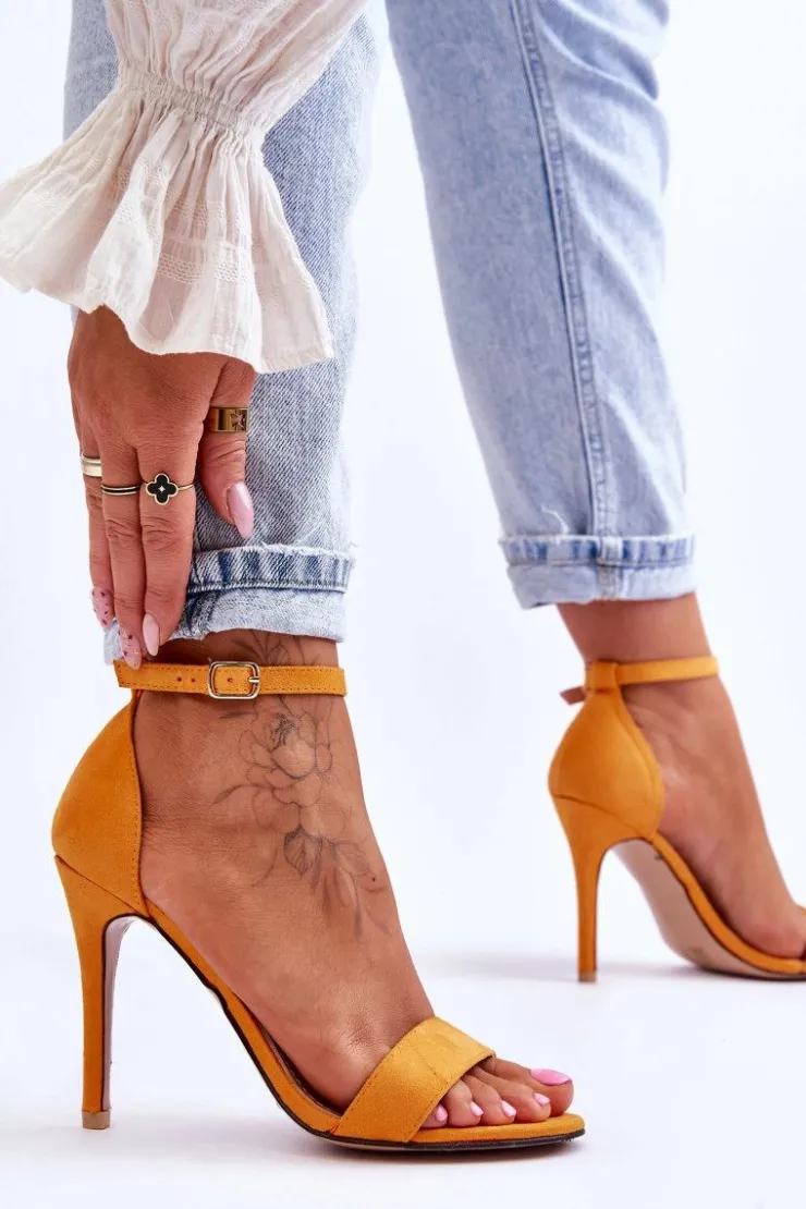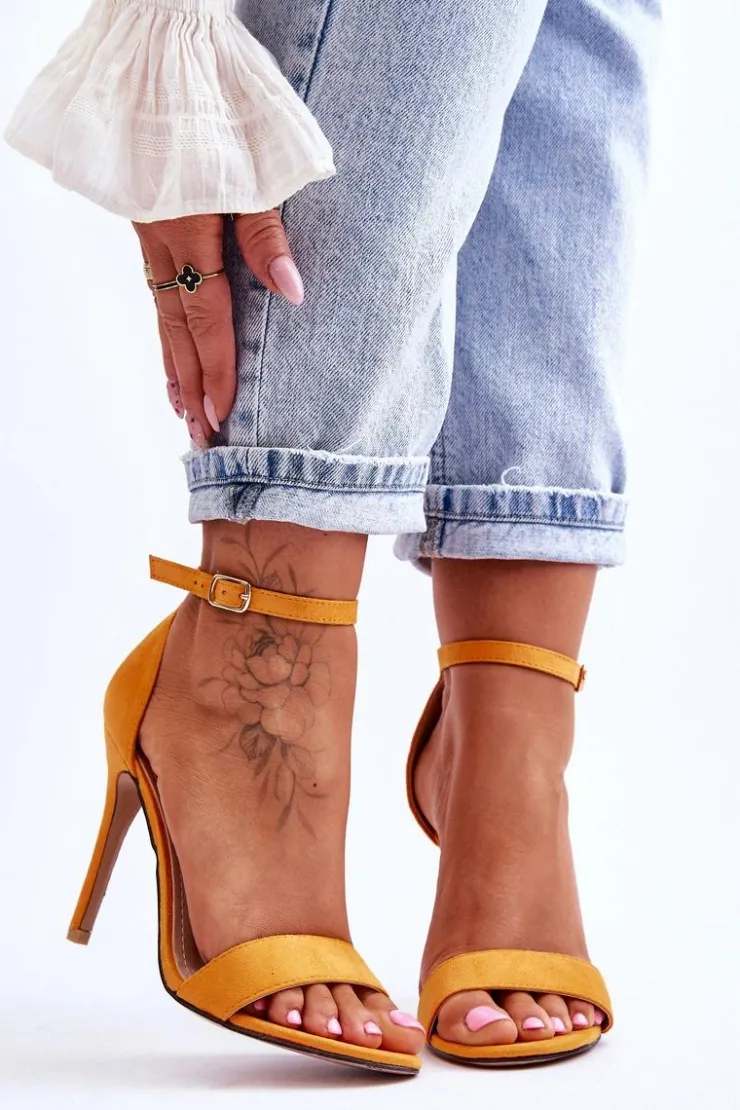 Damskie Boto Zamszowe Sandały Na Szpilce Żółte Liberty
