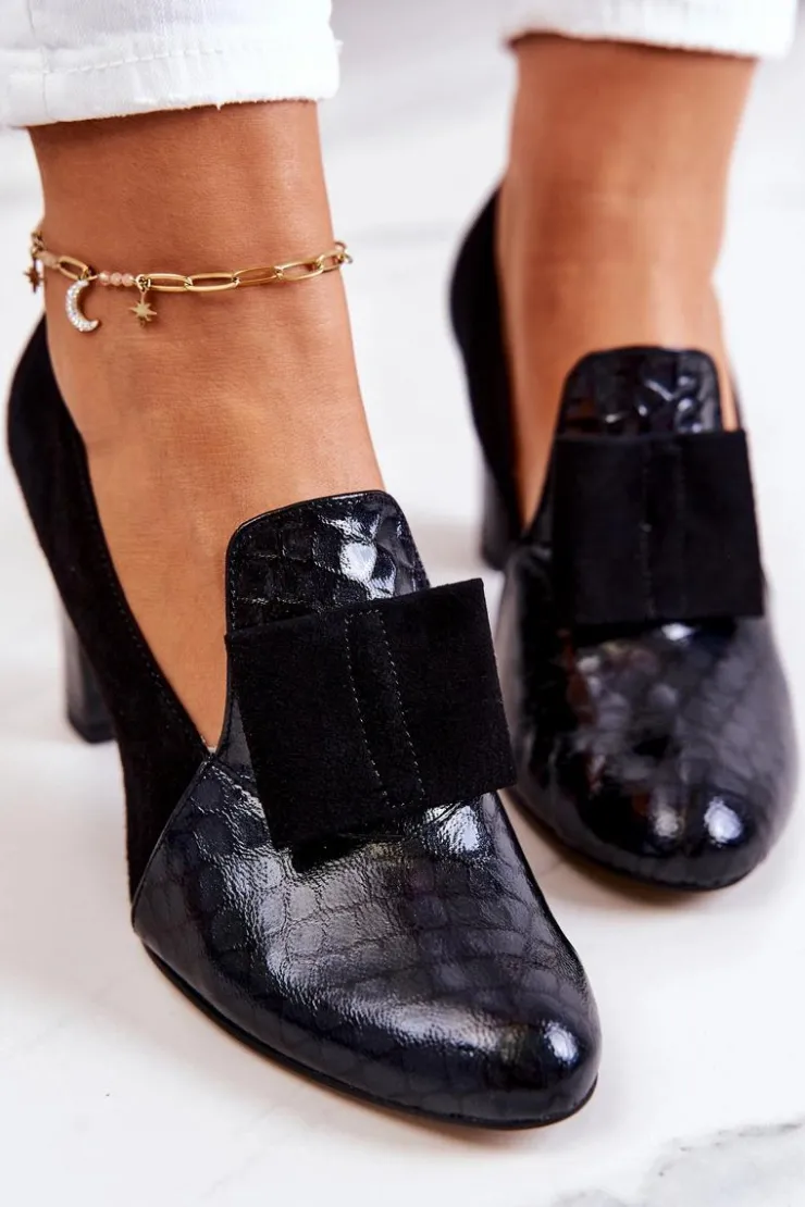 Piękne czółenka są wykonane z naturalnej skóry. Modny wzór na przodzie oraz obcasie. Miękka wkładka z naturalnej skóry daje poczucie komfortu na każdym kroku. Buty wykonane z dbałością o szczegóły. Nie możesz przejść obojętnie obok tego modelu! Nie zwlekaj i kup już dziś! Przy wyborze rozmiaru prosimy sugerować się tabelą rozmiarów, która dostępna jest po najechaniu bądź kliknięciu w dany rozmiar.