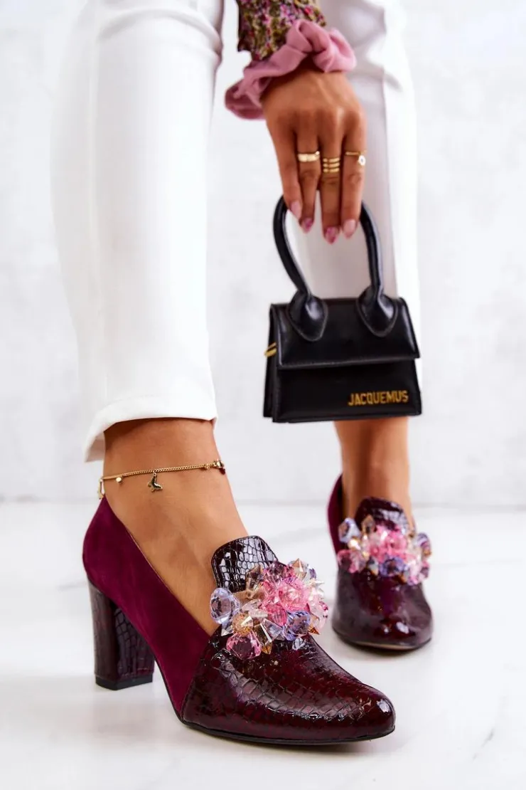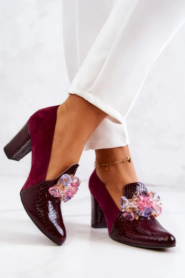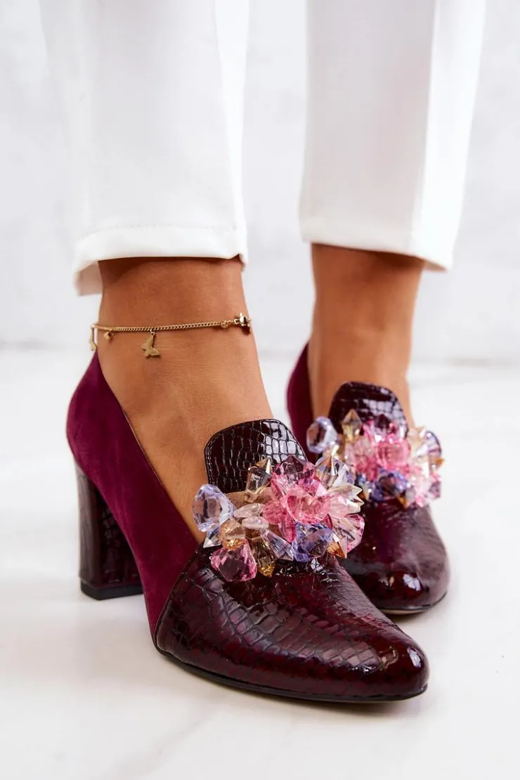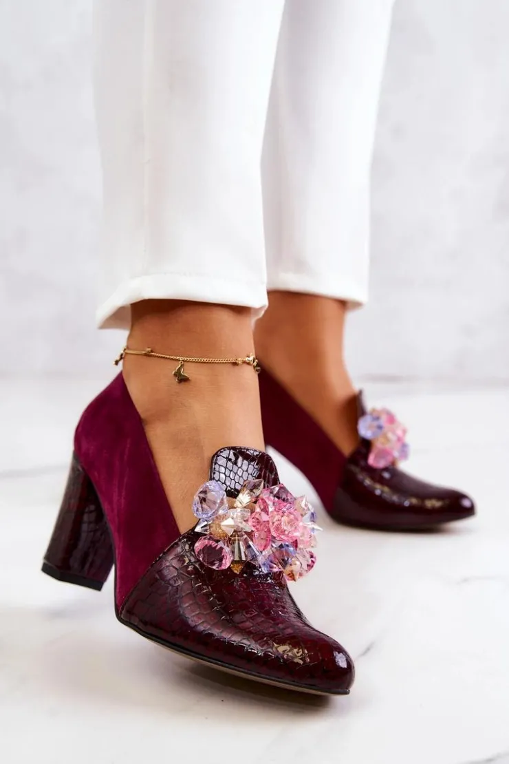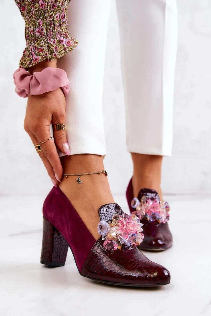 Damskie Boto Zamszowe Wężowe Czółenka Z Ozdobą Bordowe Mallory