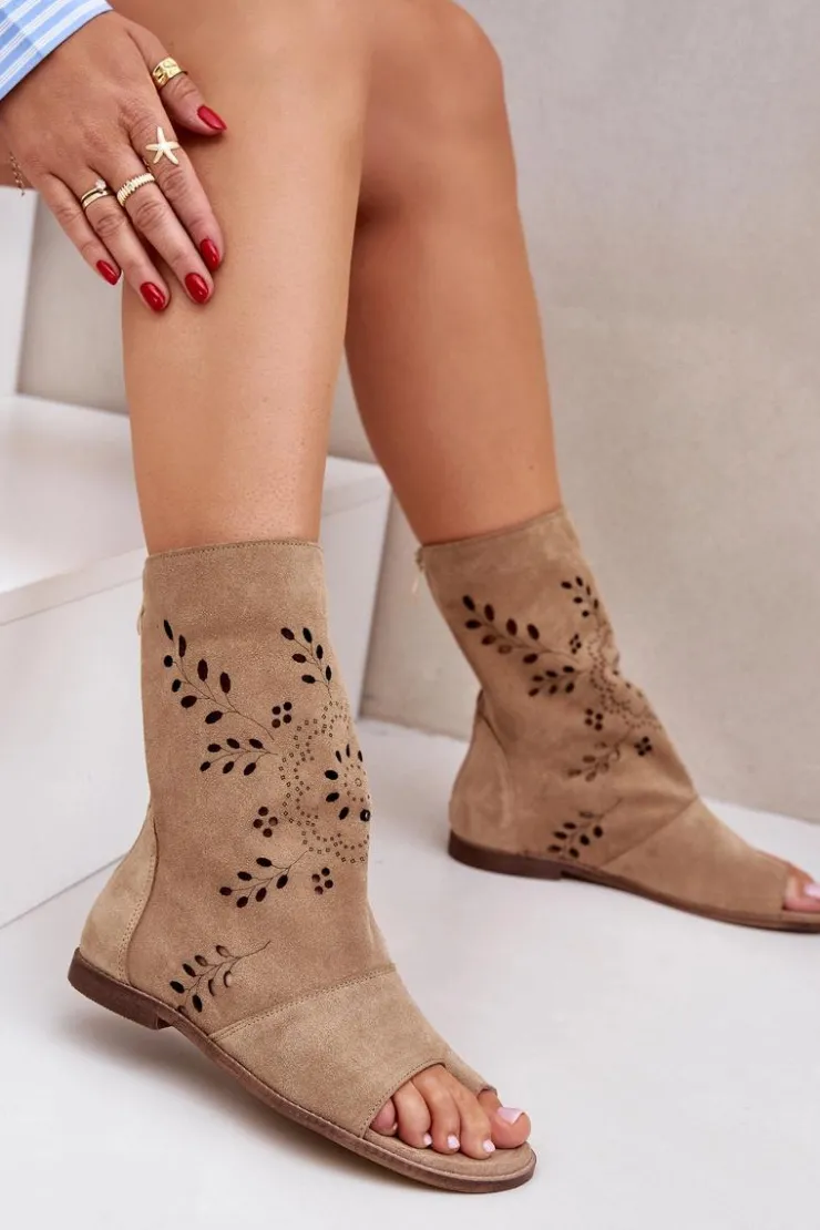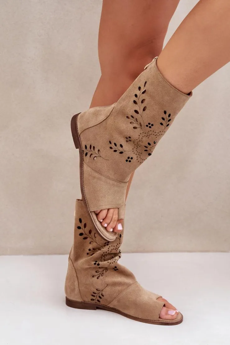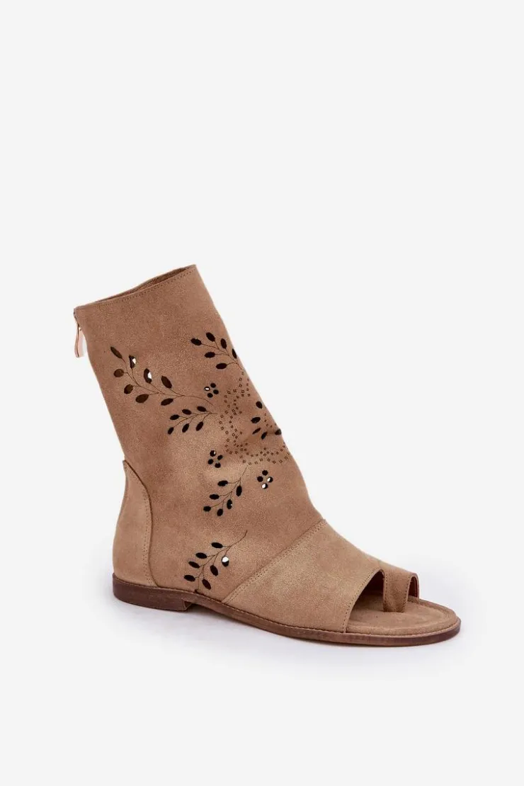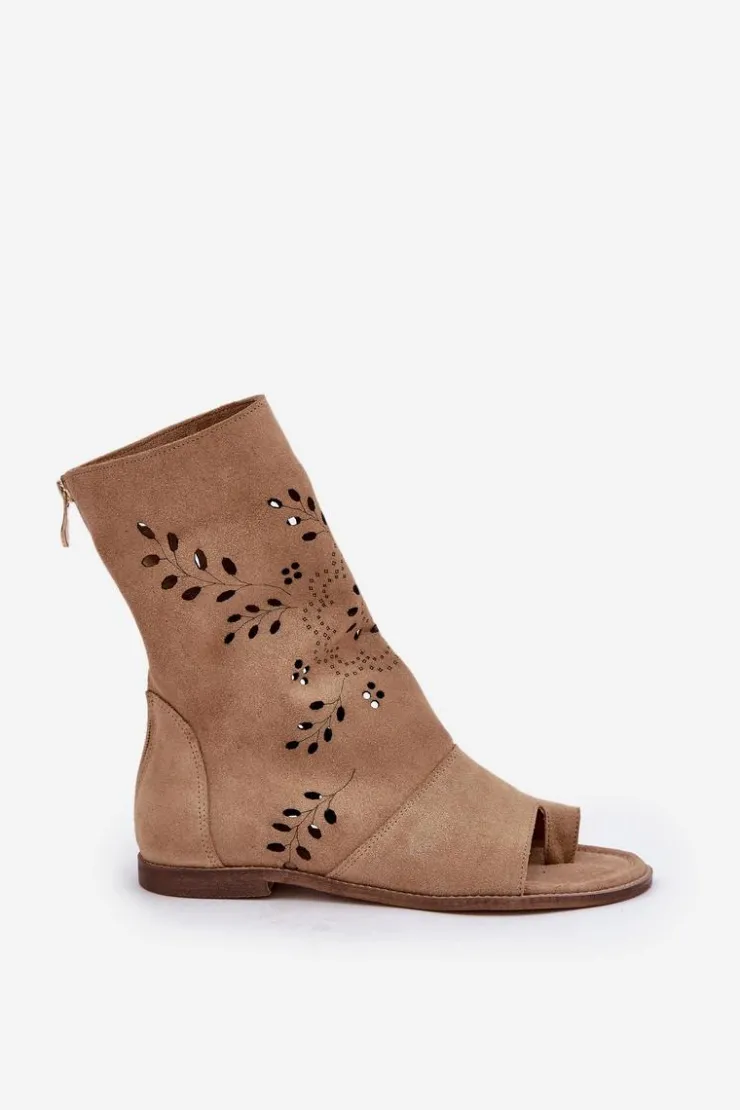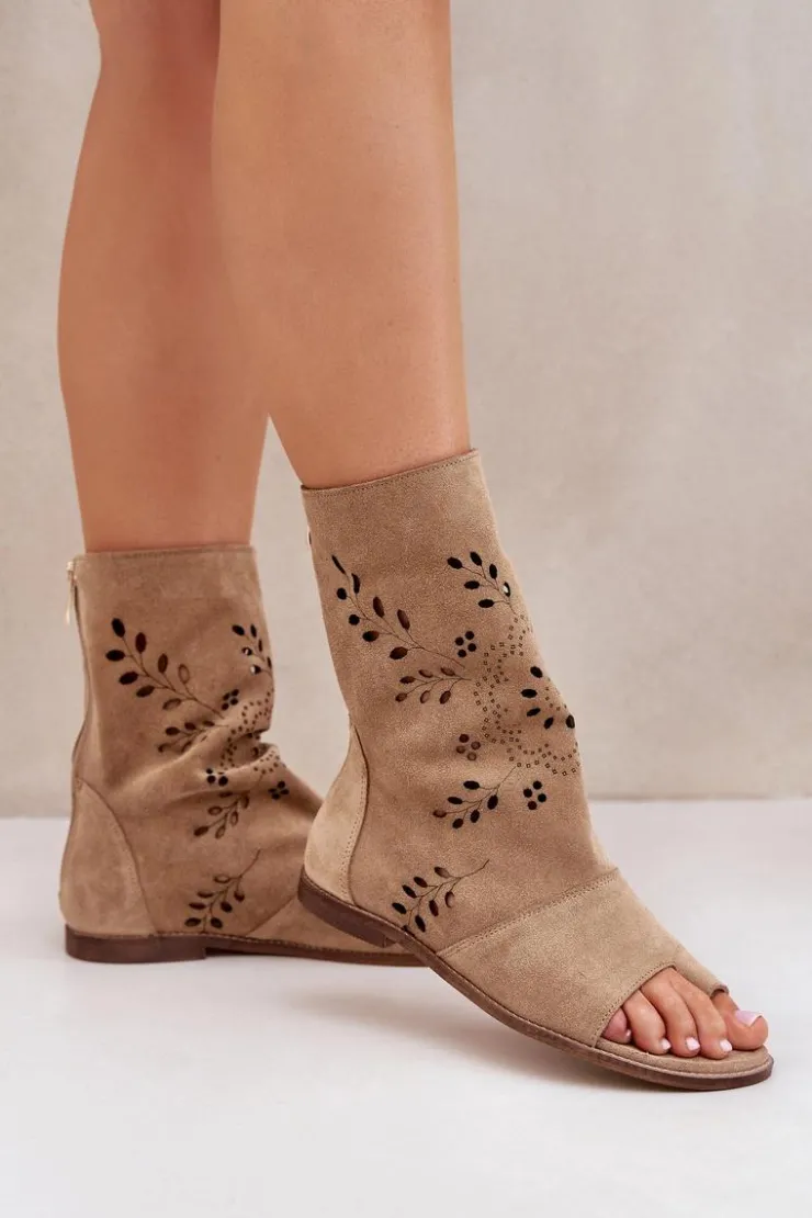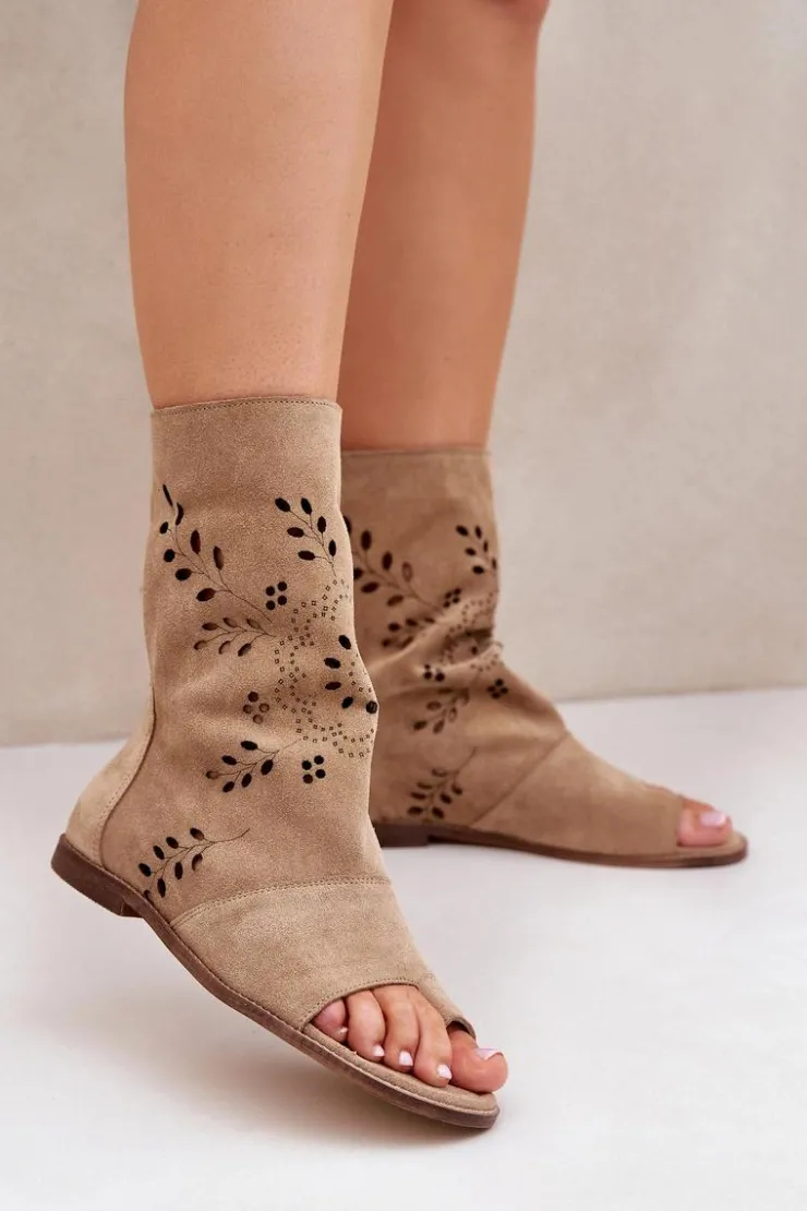 Te wyjątkowe sandały na płaskim obcasie to połączenie elegancji i wygody. Wykonane z wysokiej jakości naturalnego zamszu zapewniają trwałość i komfort noszenia. Ich cholewka, zapinana na zamek, ozdobiona jest ażurowym wzorem, który nadaje im delikatności i stylu. Doskonale sprawdzą się zarówno na co dzień, jak i na specjalne okazje, dodając Twojej stylizacji wyjątkowego uroku. Przy wyborze rozmiaru prosimy sugerować się tabelą rozmiarów.