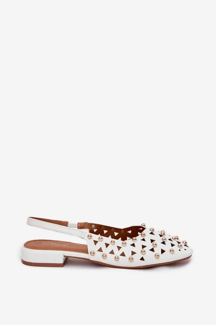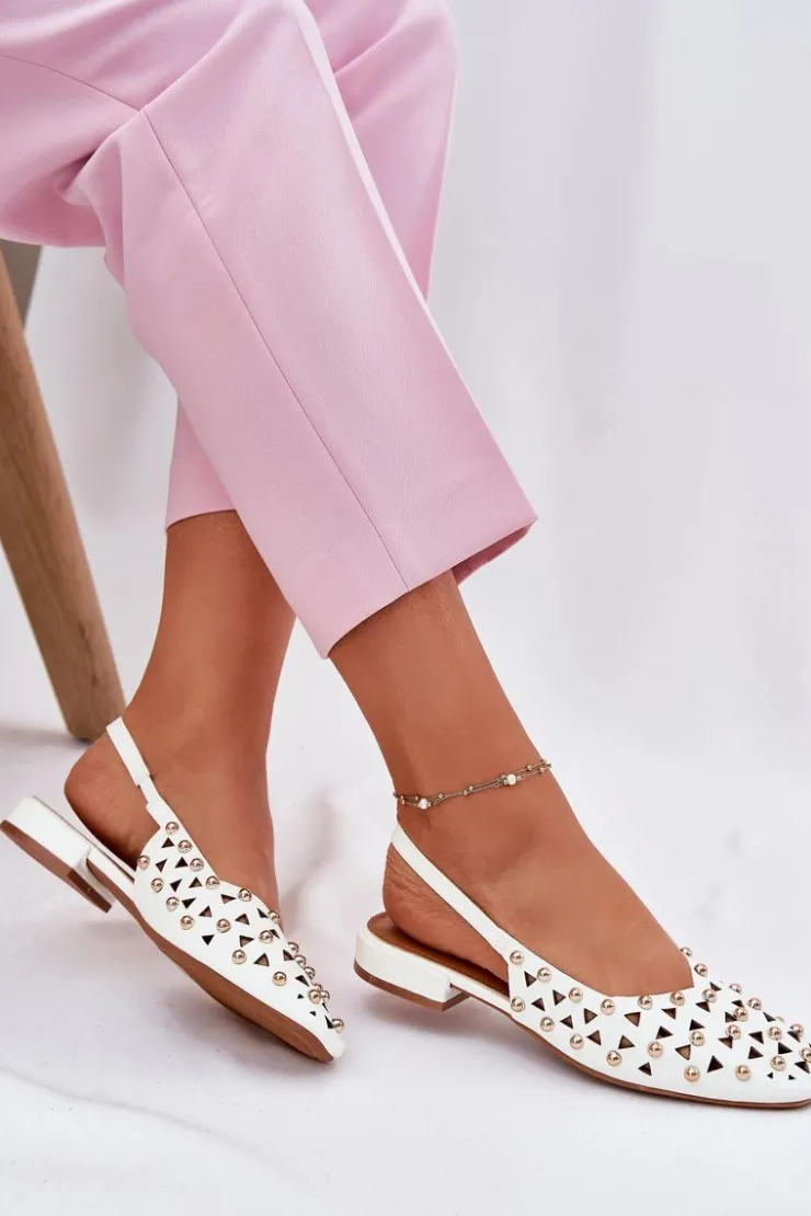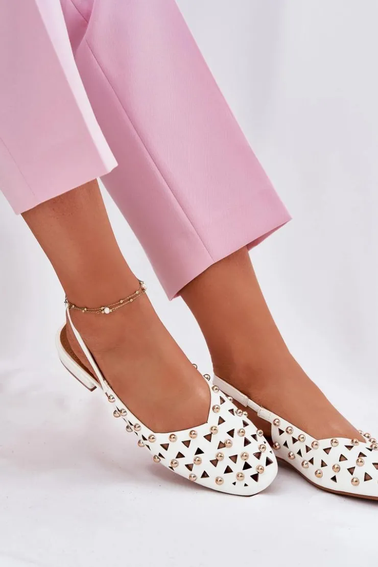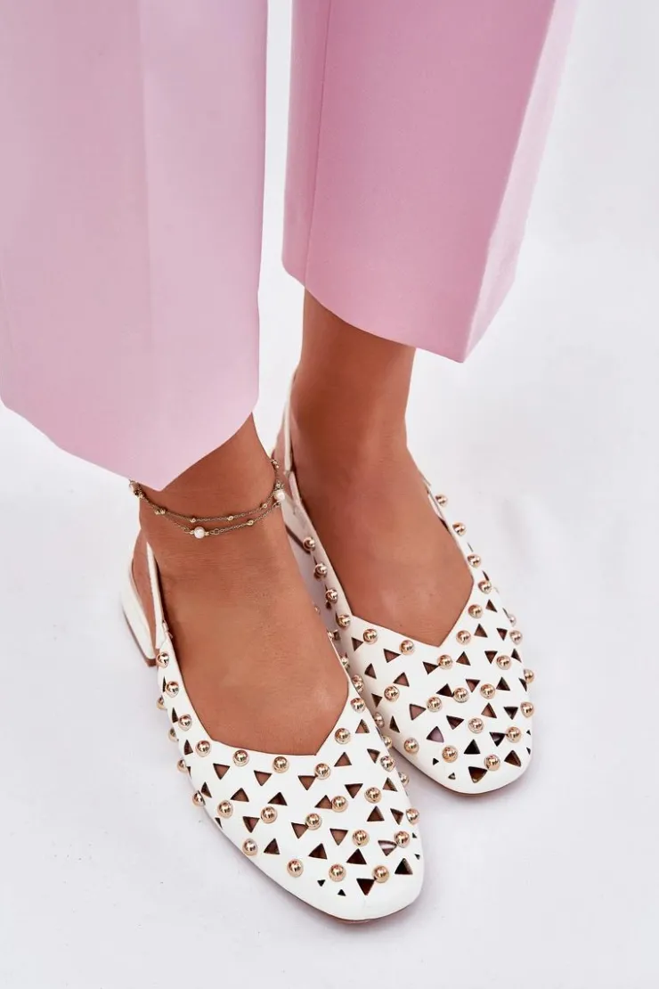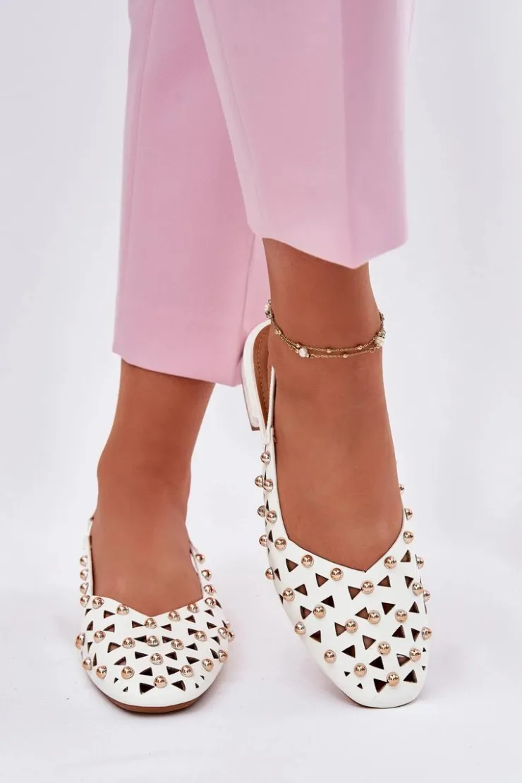 Damskie Boto Zdobione Baleriny Na Płaskim Obcasie Białe Nilarisela
