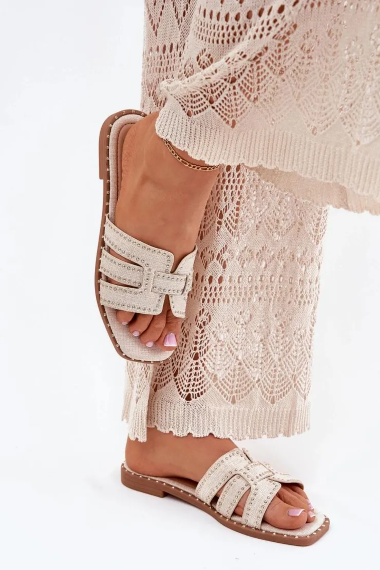 Zdobione klapki damskie wykonane z materiału tekstylnego to elegancka i wygodna propozycja na ciepłe dni. Osadzone na płaskim obcasie, zapewniają komfort przez cały dzień. Subtelne zdobienia przyciągają wzrok, dodając butom wyjątkowego charakteru. Idealne do codziennych stylizacji, łączą funkcjonalność z modnym wyglądem. Przy wyborze rozmiaru prosimy sugerować się tabelą rozmiarów.