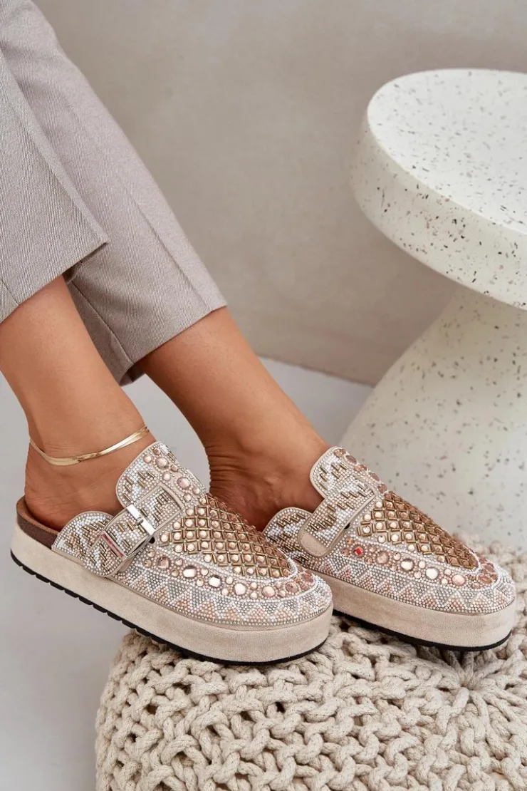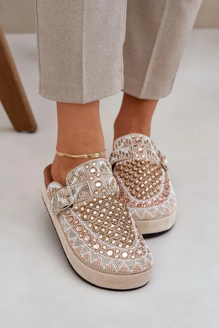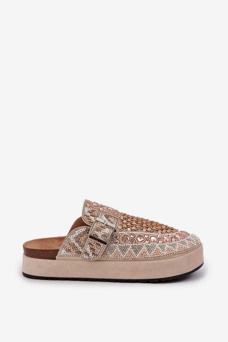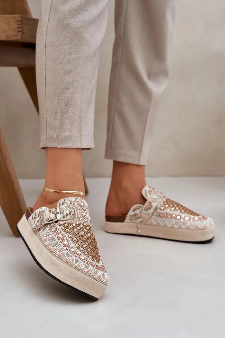 Damskie Boto Zdobione Klapki Na Platformie Beżowe Terfitra