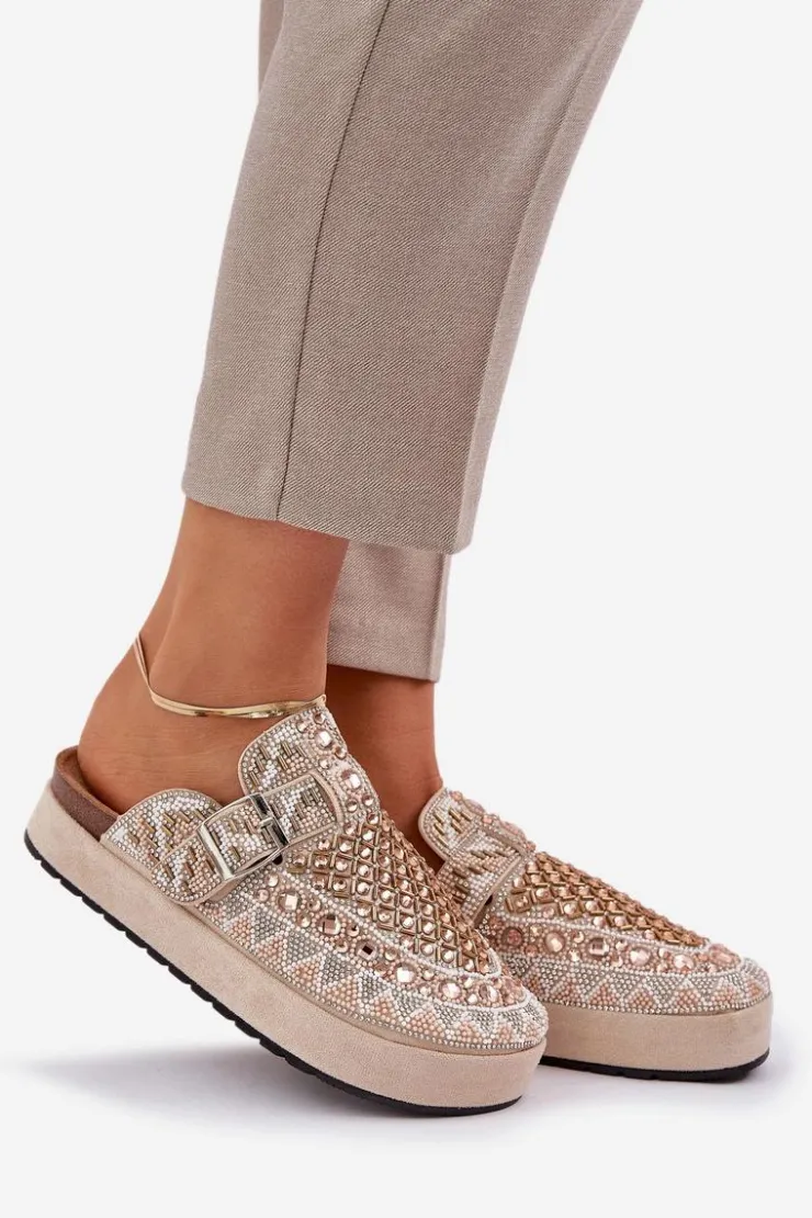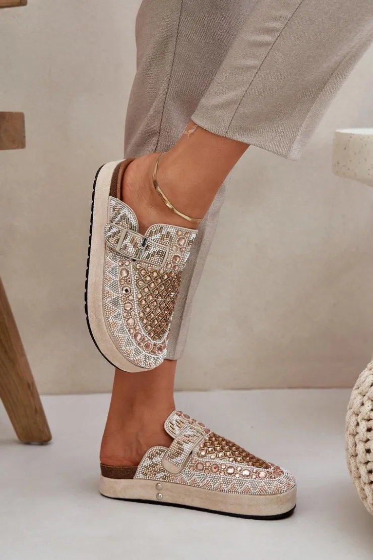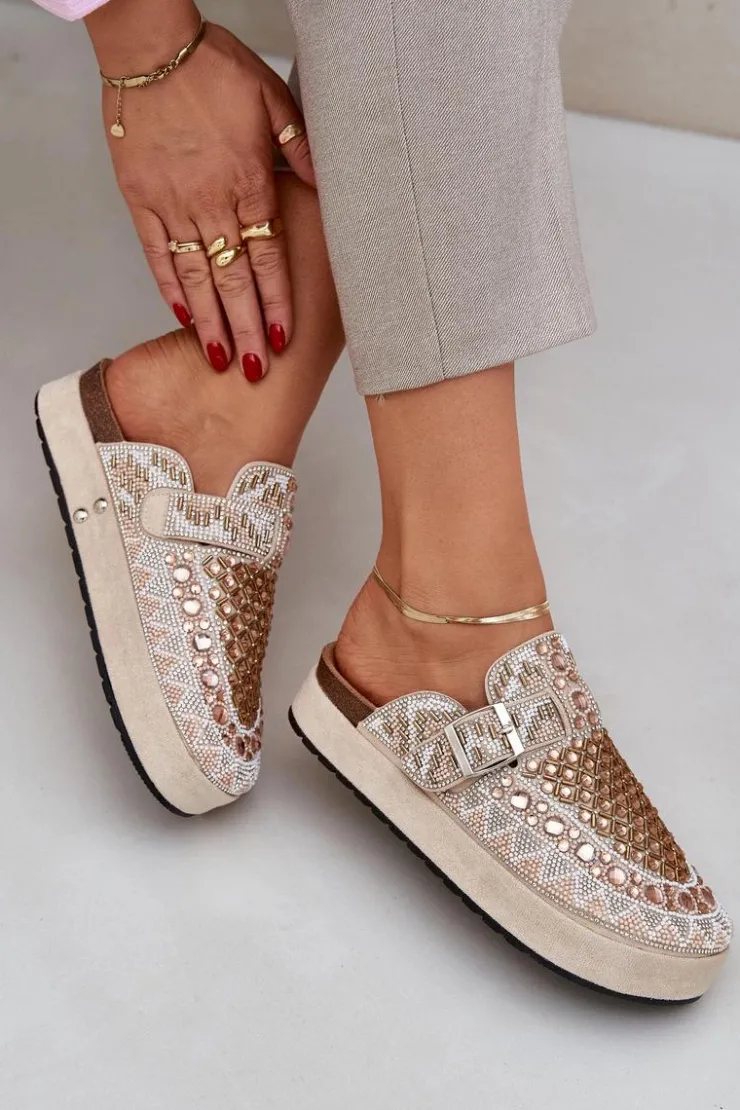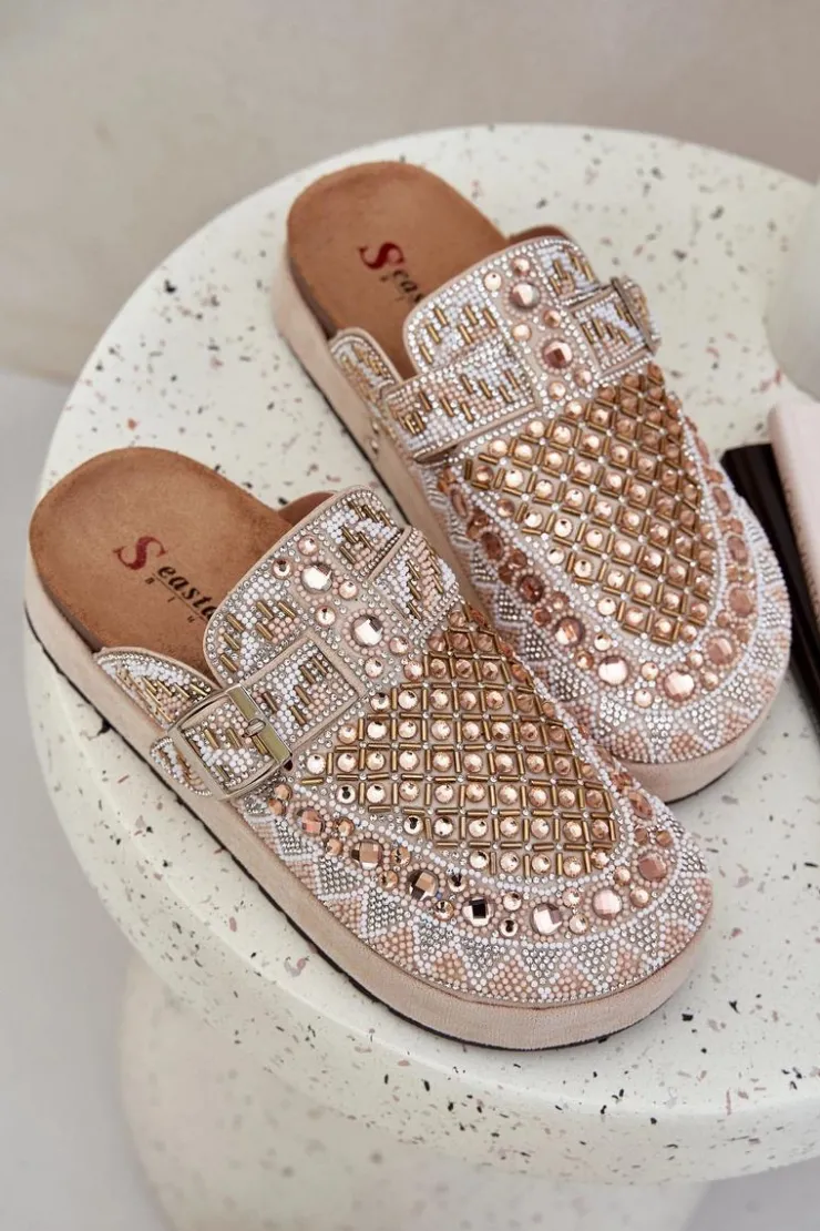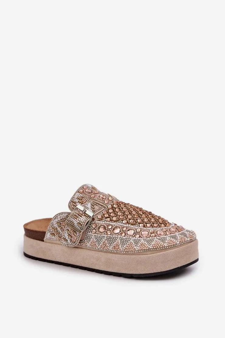 Damskie Boto Zdobione Klapki Na Platformie Beżowe Terfitra