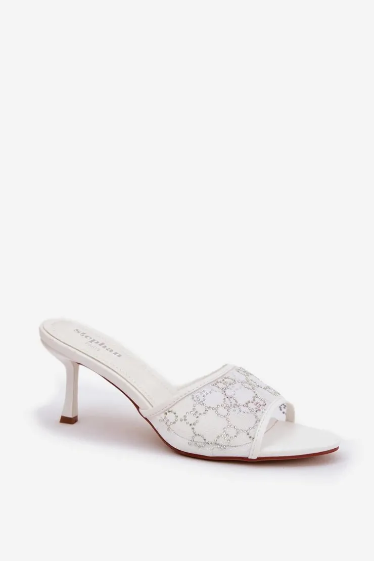 Klapki damskie na obcasie szpilce. Na przodzie, na pasku, znajduje się subtelne zdobienie, które nadaje im wyjątkowego uroku. Miękka wkładka wykonana z eko skóry gwarantuje wygodę przez cały dzień, czyniąc te klapki idealnym wyborem na letnie wyjścia, jak również na bardziej eleganckie okazje. Przy wyborze rozmiaru prosimy sugerować się tabelą rozmiarów.
