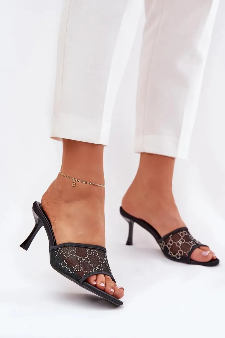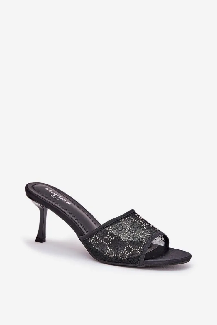 Klapki damskie na obcasie szpilce. Na przodzie, na pasku, znajduje się subtelne zdobienie, które nadaje im wyjątkowego uroku. Miękka wkładka wykonana z eko skóry gwarantuje wygodę przez cały dzień, czyniąc te klapki idealnym wyborem na letnie wyjścia, jak również na bardziej eleganckie okazje. Przy wyborze rozmiaru prosimy sugerować się tabelą rozmiarów.
