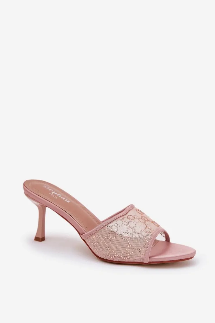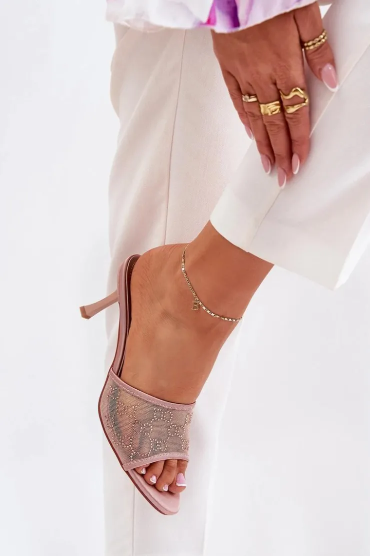 Klapki damskie na obcasie szpilce. Na przodzie, na pasku, znajduje się subtelne zdobienie, które nadaje im wyjątkowego uroku. Miękka wkładka wykonana z eko skóry gwarantuje wygodę przez cały dzień, czyniąc te klapki idealnym wyborem na letnie wyjścia, jak również na bardziej eleganckie okazje. Przy wyborze rozmiaru prosimy sugerować się tabelą rozmiarów.