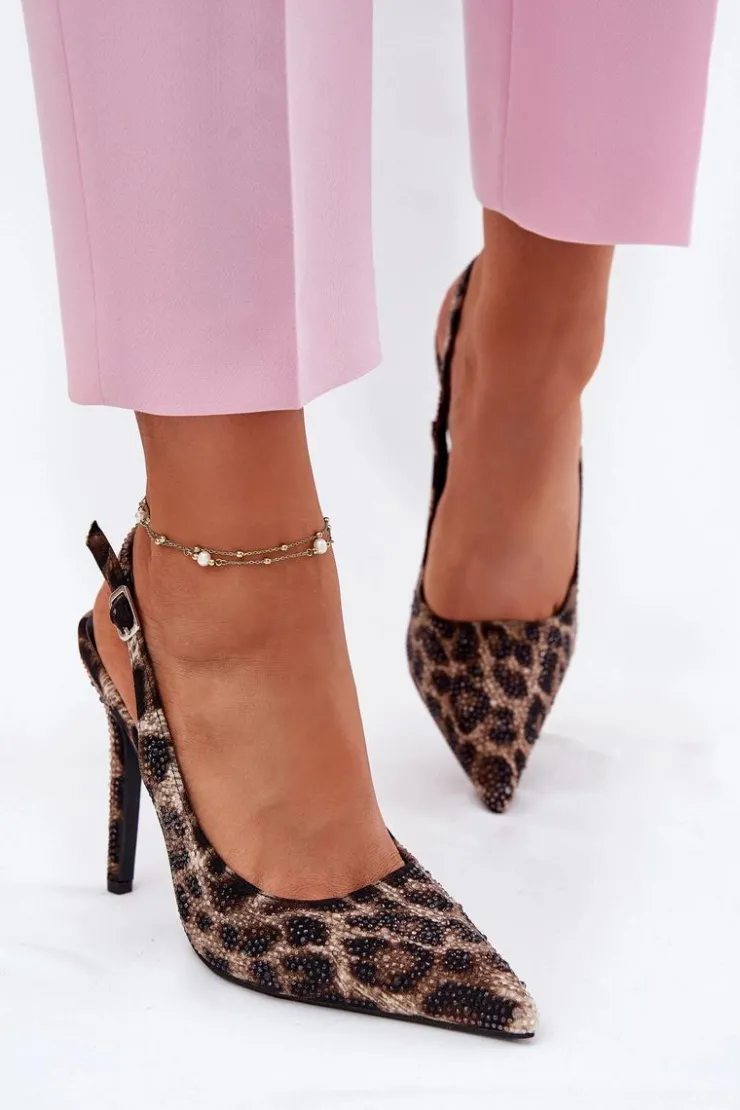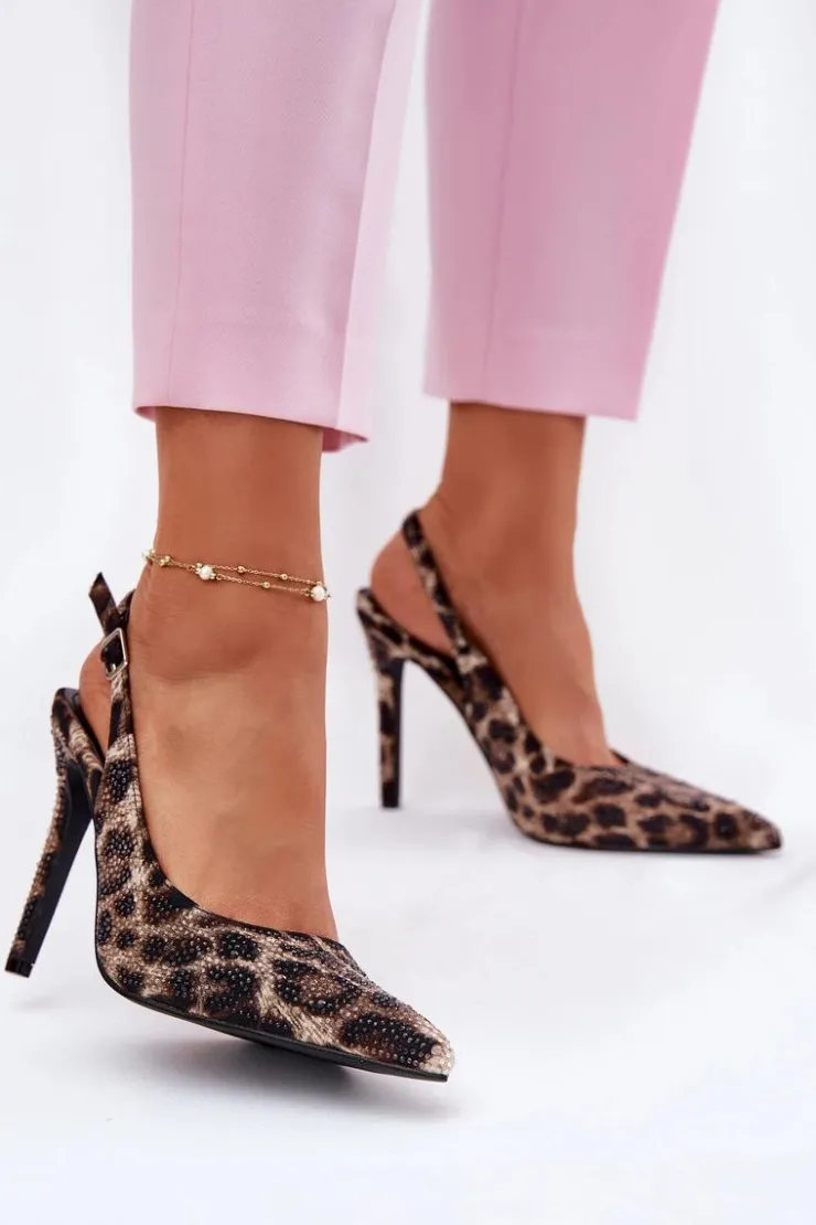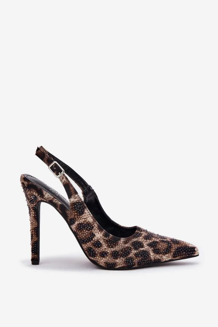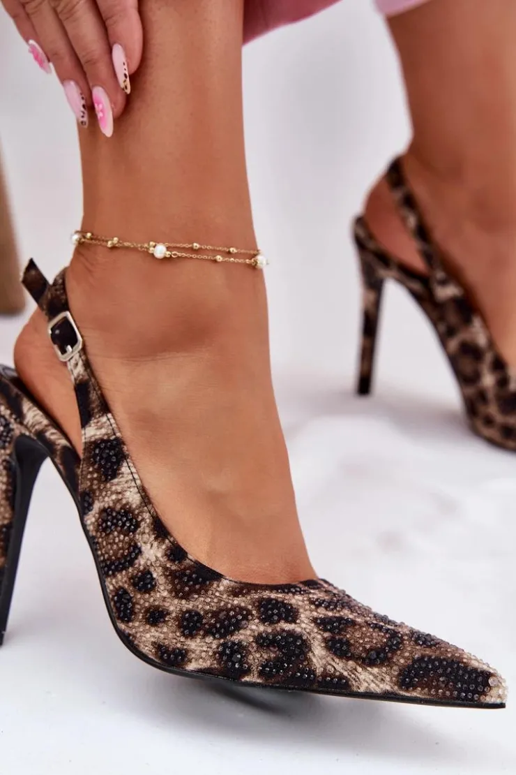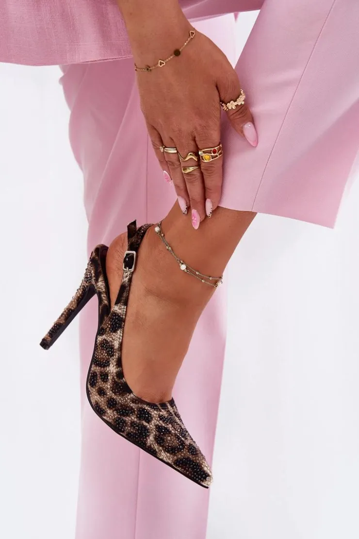 Te eleganckie sandały na szpilce z pewnością przyciągną uwagę wszystkich wokół! Noski w szpic pięknie wysmuklają nogi, a wygodne zapięcie na regulowany pasek ze sprzączką gwarantuje perfekcyjne dopasowanie. Zdobienie dodaje blasku i sprawiają, że wyróżnisz się w tłumie. To doskonałe obuwie na ważne uroczystości, przyjęcia lub romantyczne wieczory. Przy wyborze rozmiaru prosimy sugerować się tabelą rozmiarów.