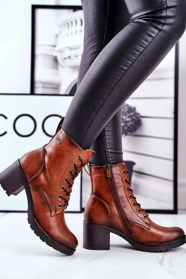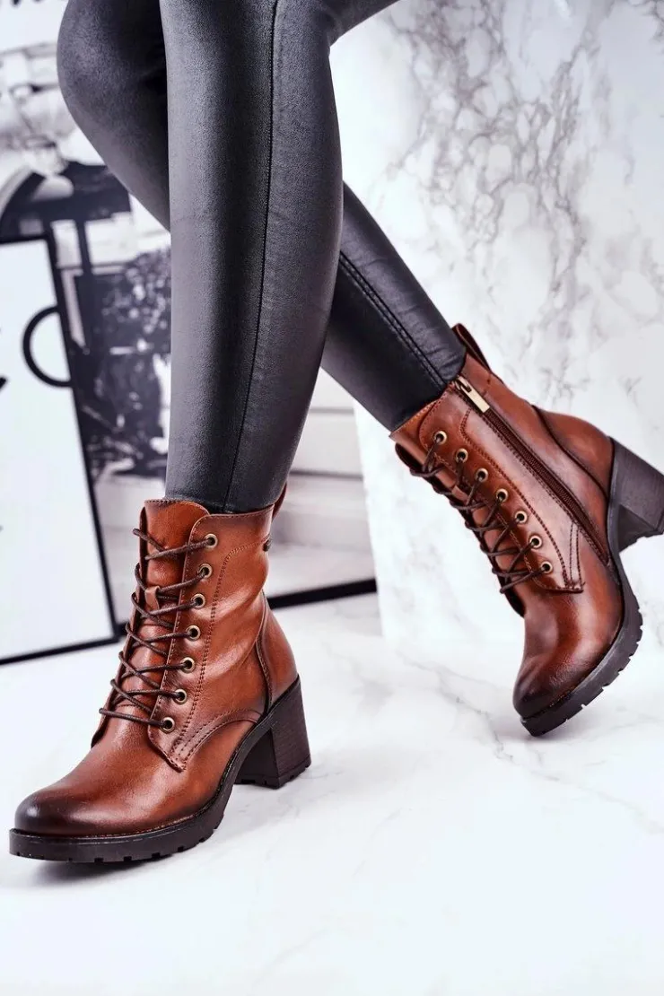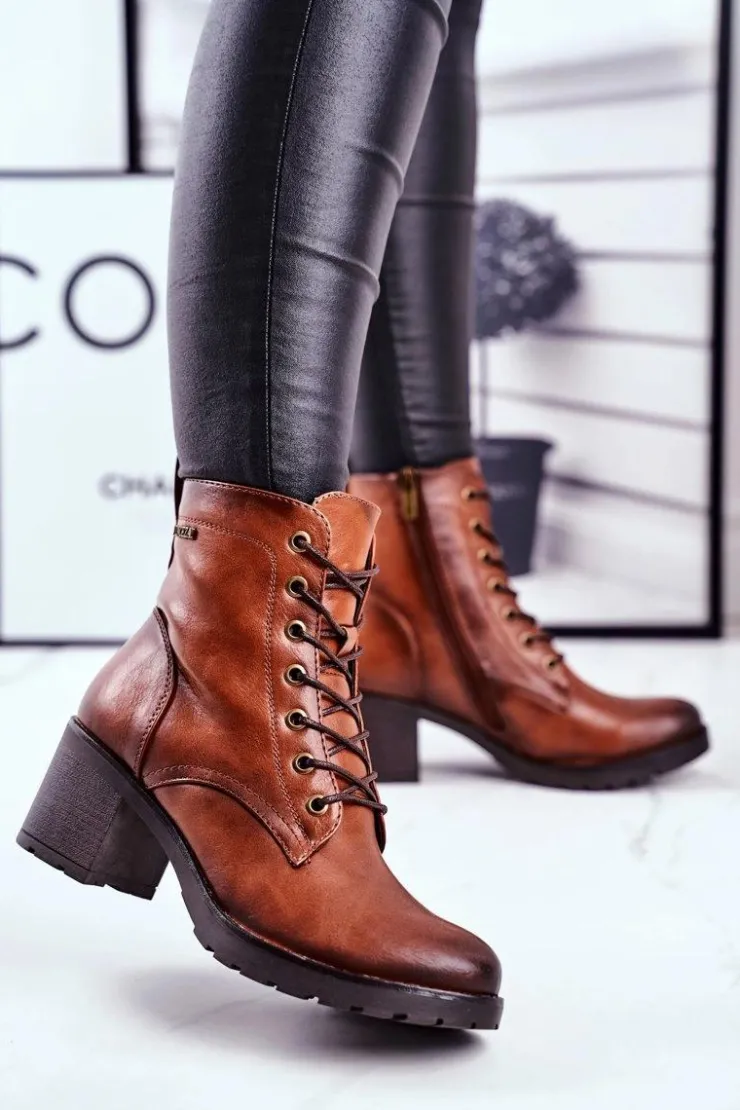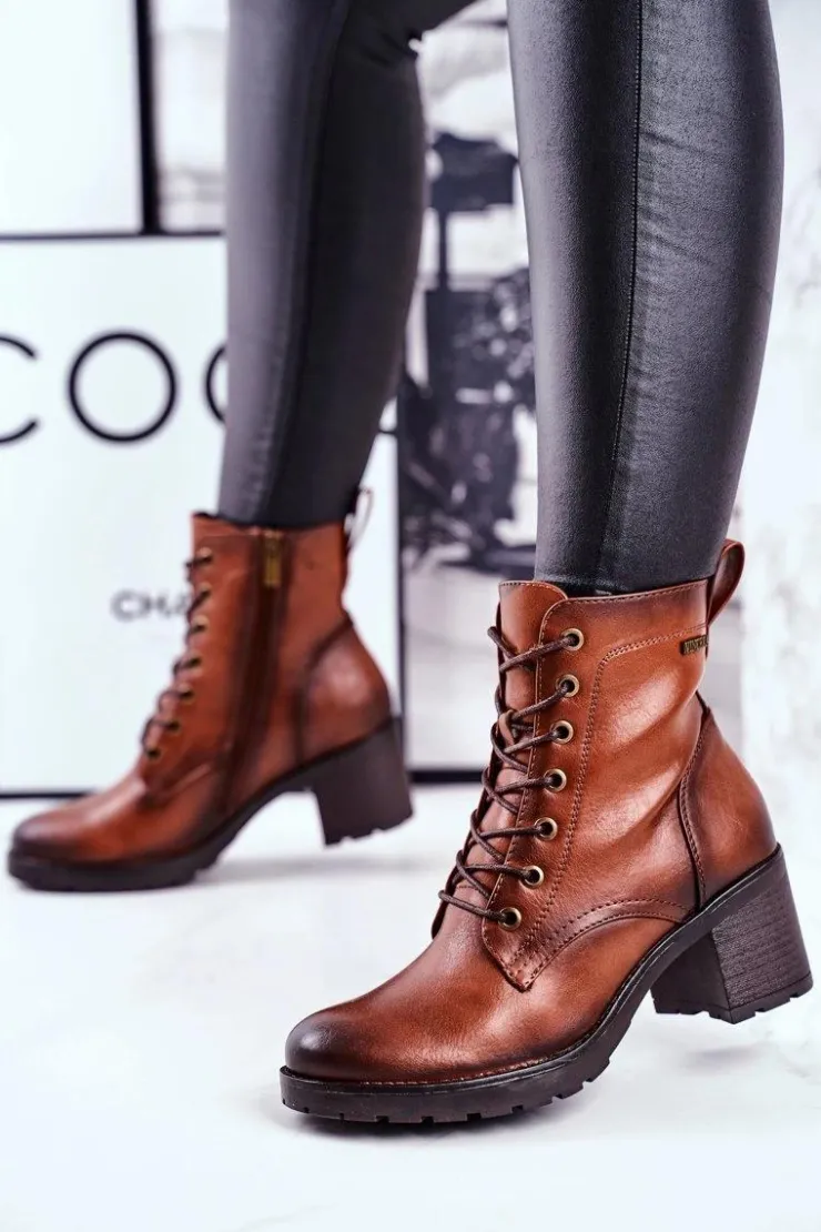 Damskie Buty damskie Vinceza Botki Damskie Na Słupku Ocieplane Brązowe Fiber