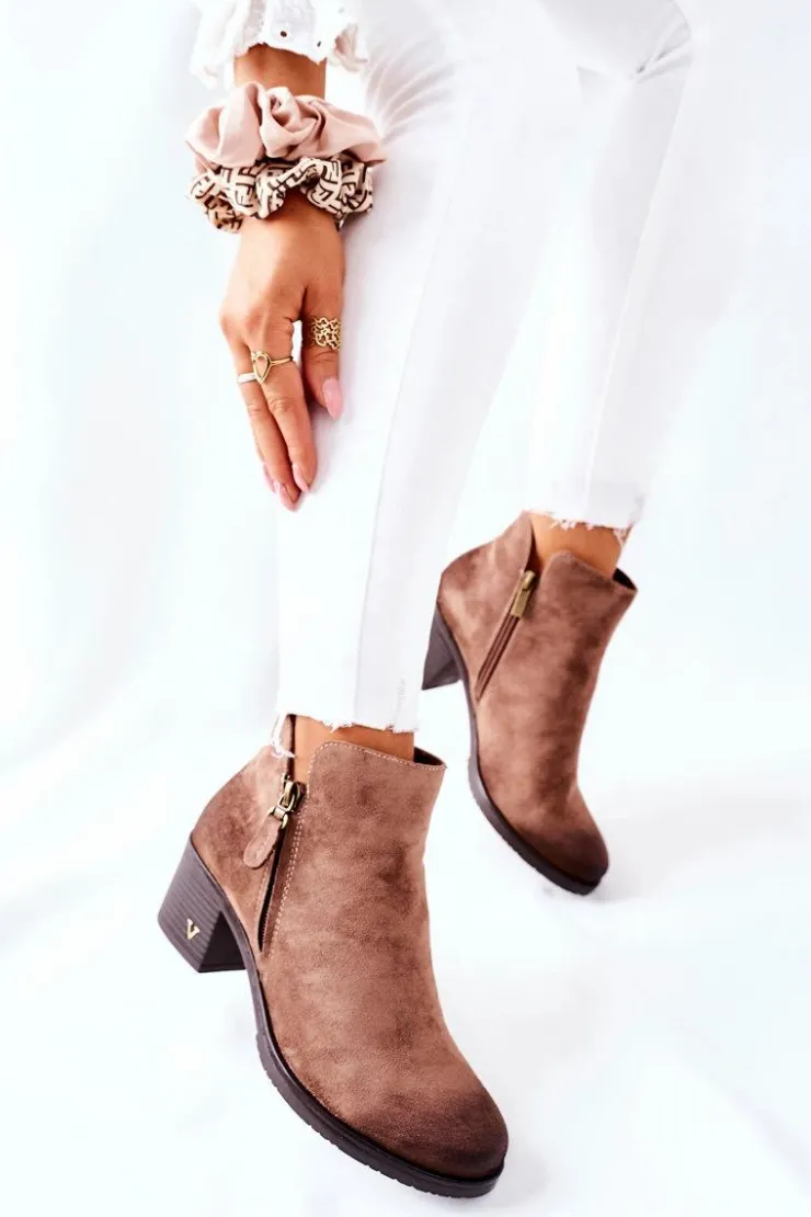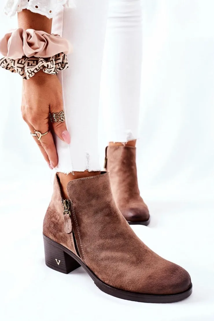 Wierzch wykonany z zamszowej skóry ekologicznej. Suwak na boku ułatwi zakładanie. Ocieplane kocem obuwniczym. Przy wyborze rozmiaru prosimy sugerować się tabelą rozmiarów.