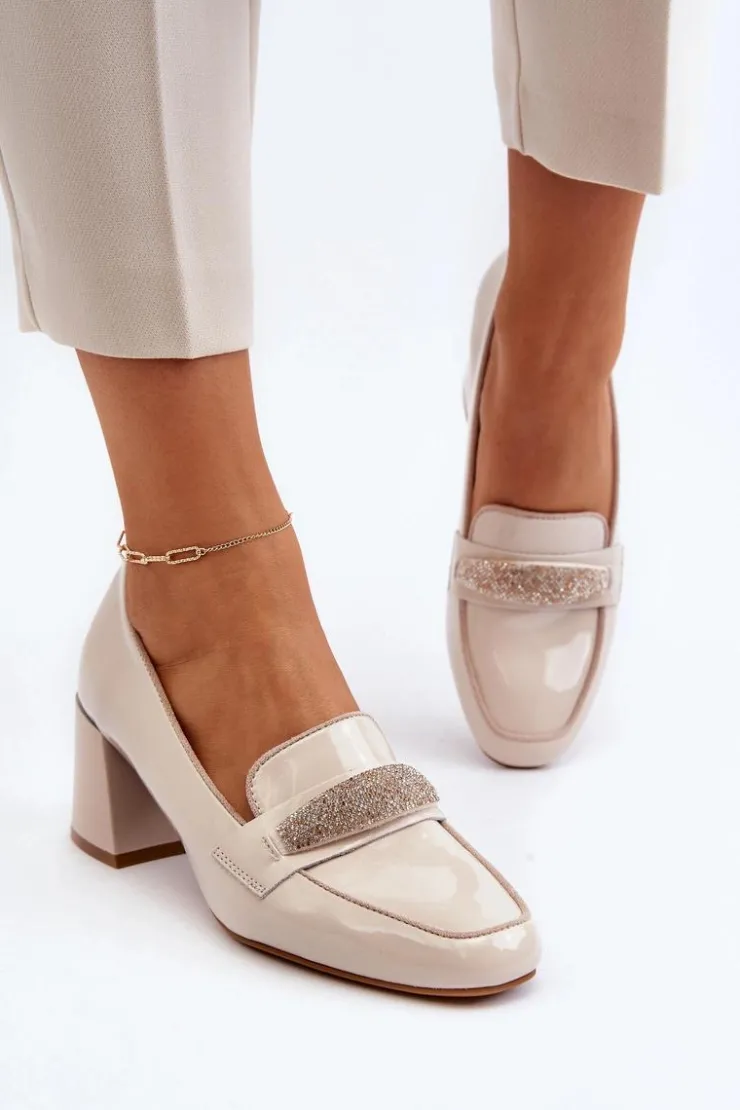 Damskie Buty damskie Vinceza Czółenka Lakierowane Z Ozdobą Beżowe Samassa