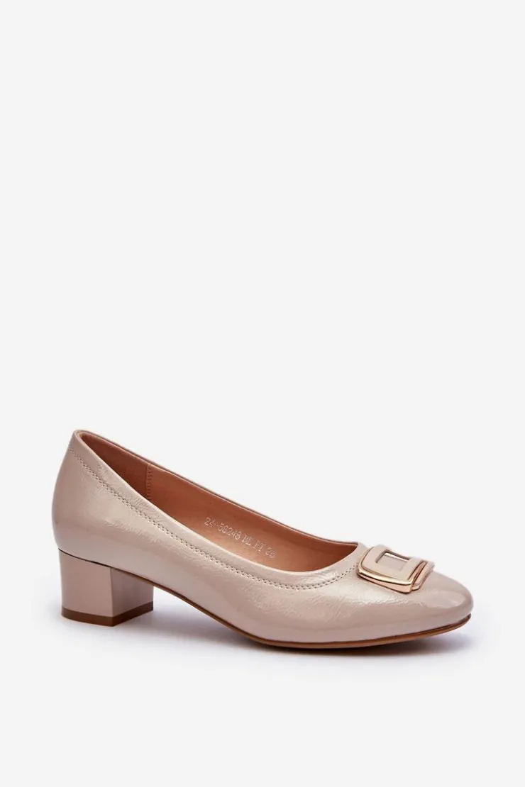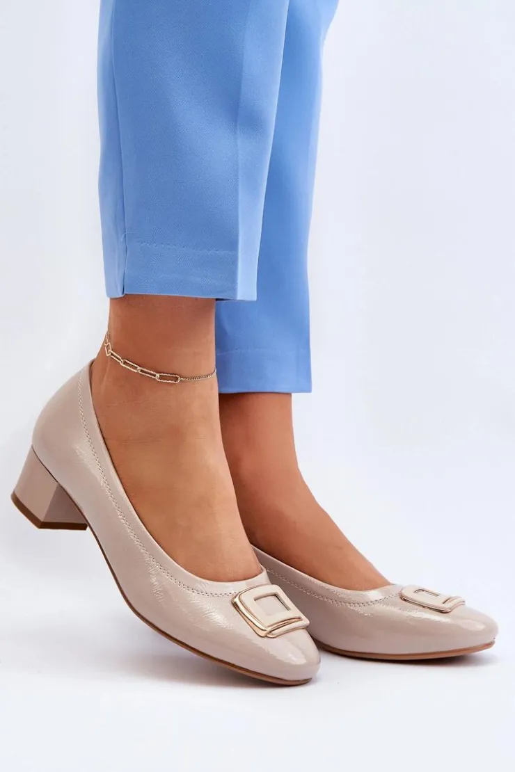 Czółenka damskie wykonane z eko skóry. Obcas w postaci klocka dodaje elegancji, sprawiając, że są idealnym wyborem zarówno do pracy, jak i na uroczyste okazje rodzinne. Ozdoba z przodu cholewki nadaje im wyjątkowego charakteru, a noski w kształcie migdała dodają subtelności. Dodatkowo usztywniony zapiętek zapewnia stabilizację stopy. Przy wyborze rozmiaru prosimy sugerować się tabelą rozmiarów.