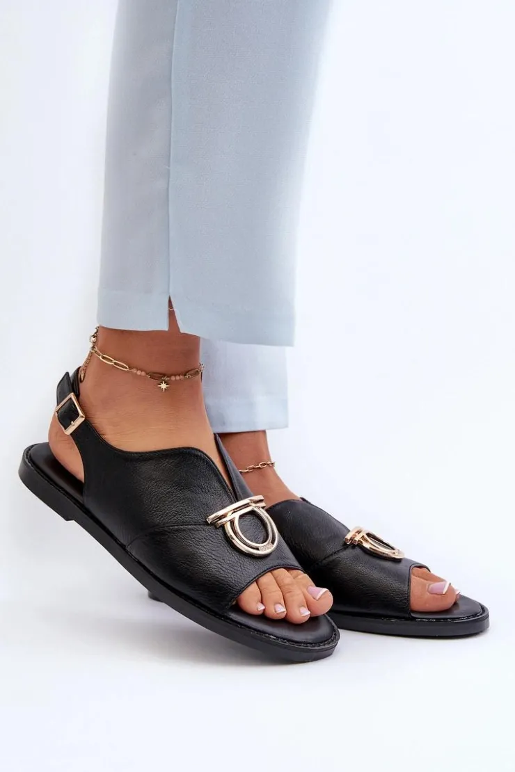Damskie Buty damskie Vinceza Płaskie Sandały Damskie Ze Złotą Ozdobą Vinceza 17319 Czarne