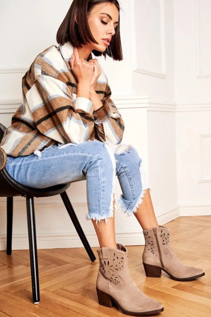 Botki to nie tylko buty na chłodne dni. Świetnie sprawdzą się również podczas tworzenia wiosennych stylizacjach. Botki posiadają zamek z boku cholewki ułatwiający zakładanie. W całości wykonane ze skóry zamszowej, co gwarantuje nam komfort oraz wysoką jakość wykonania. Idealne do zwiewnych sukienek oraz jeansowych spodni. Przy wyborze rozmiaru prosimy sugerować się tabelą rozmiarów.