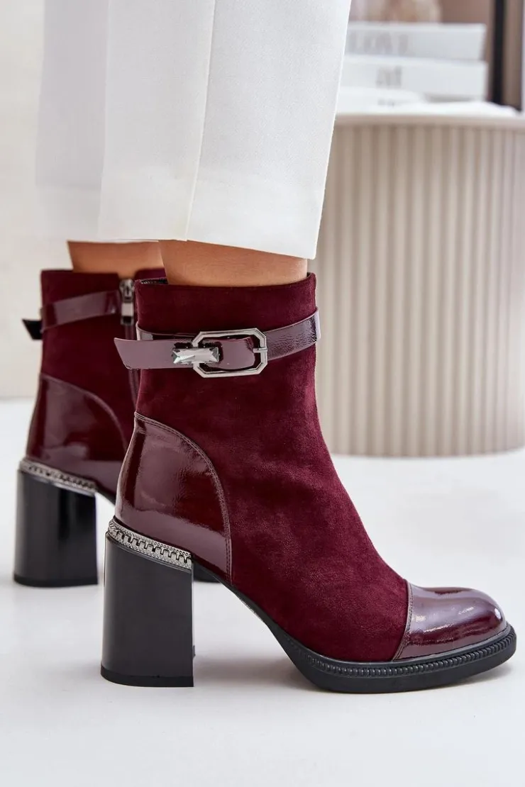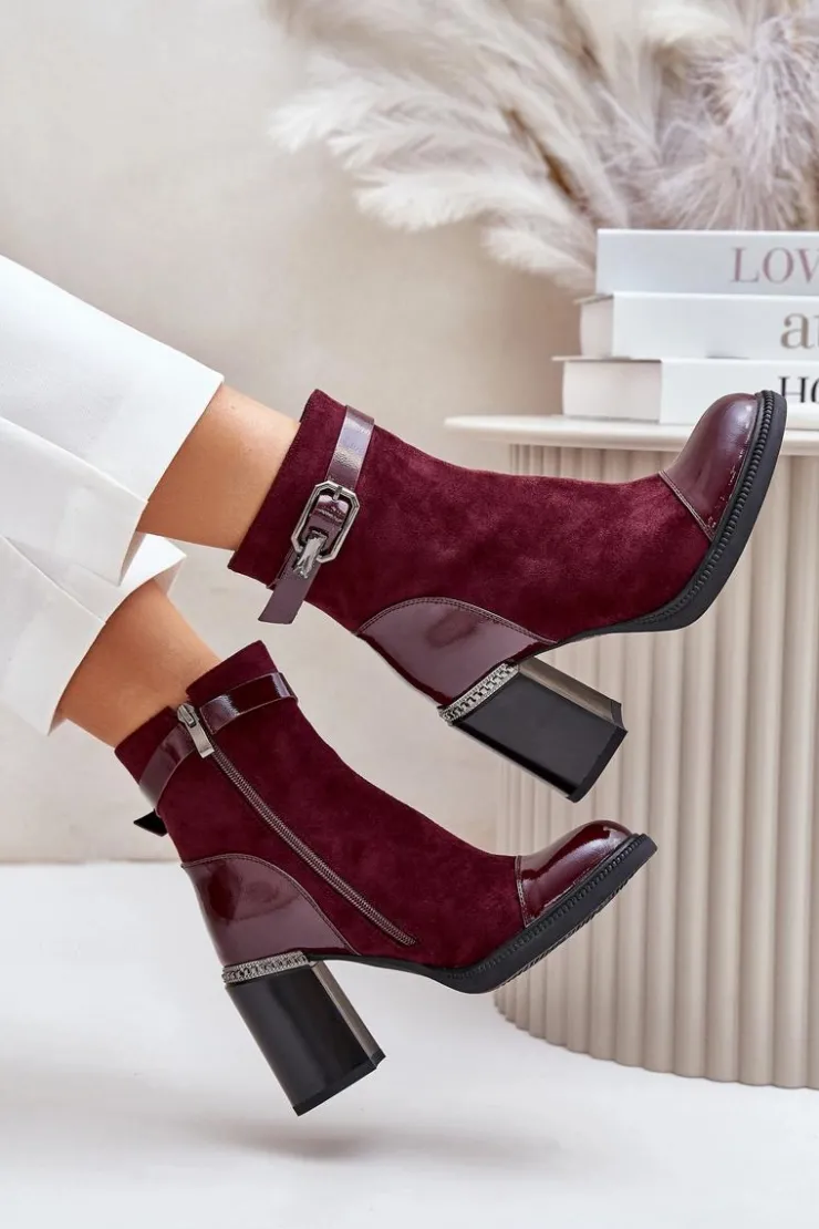 Eleganckie botki wykonane z eko skóry. Model ten wyróżnia ozdobny element przy obcasie oraz klamra, która nadaje elegancji. Wnętrze ocieplane dla dodatkowego komfortu w chłodniejsze dni. Model zapinany na zamek, z noskami w migdał. Idealne do wielu stylizacji! Przy wyborze rozmiaru prosimy sugerować się tabelą rozmiarów.