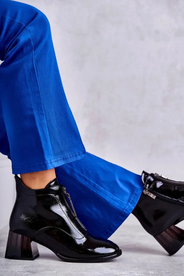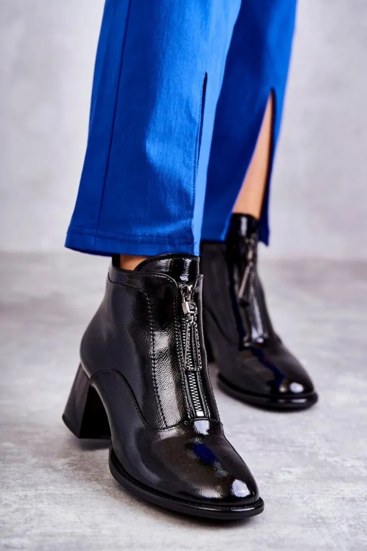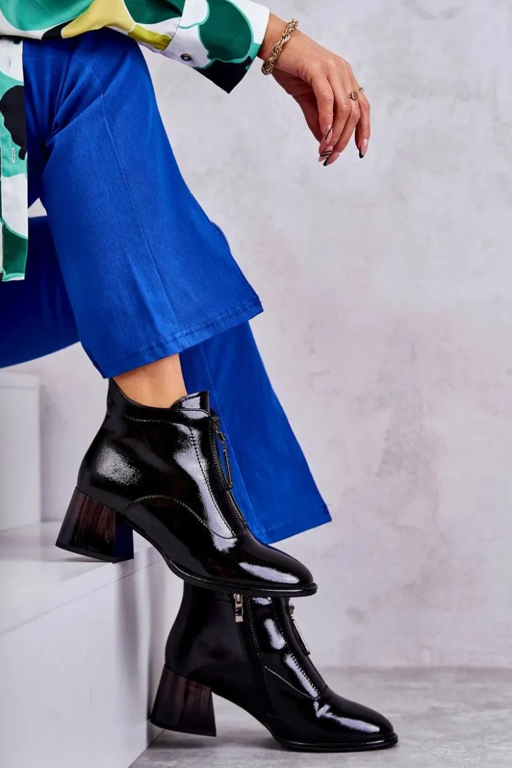 Damskie botki zostały wykonane z eko skóry. Posiadają dwa ozdobne zamki — jeden z przodu, drugi z boku. Botki zostały osadzone na niskim, masywnym obcasie. Cholewka za kostkę jest w środku ocieplana kocem obuwniczym. Dodatkowo zapiętek jest usztywniany. Miękka wkładka zapewni wygodę oraz komfort podczas użytkowania. Przy wyborze rozmiaru prosimy sugerować się tabelą rozmiarów.