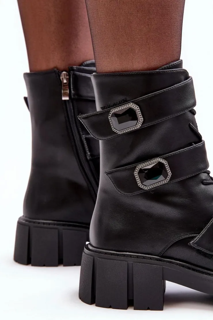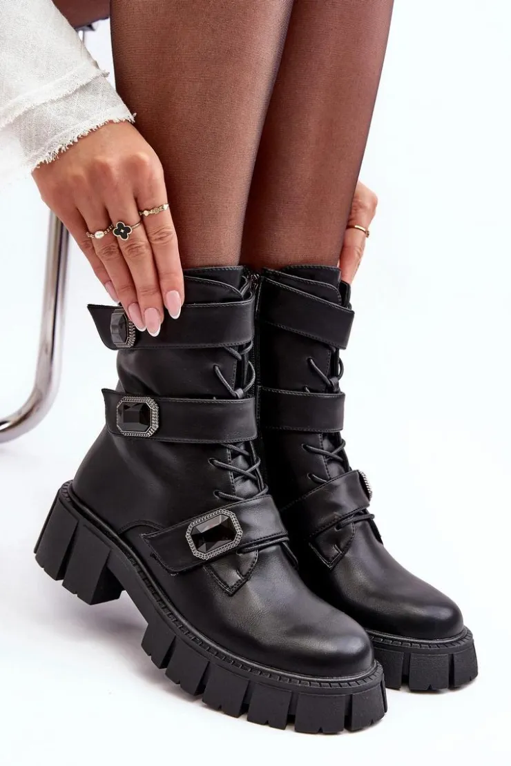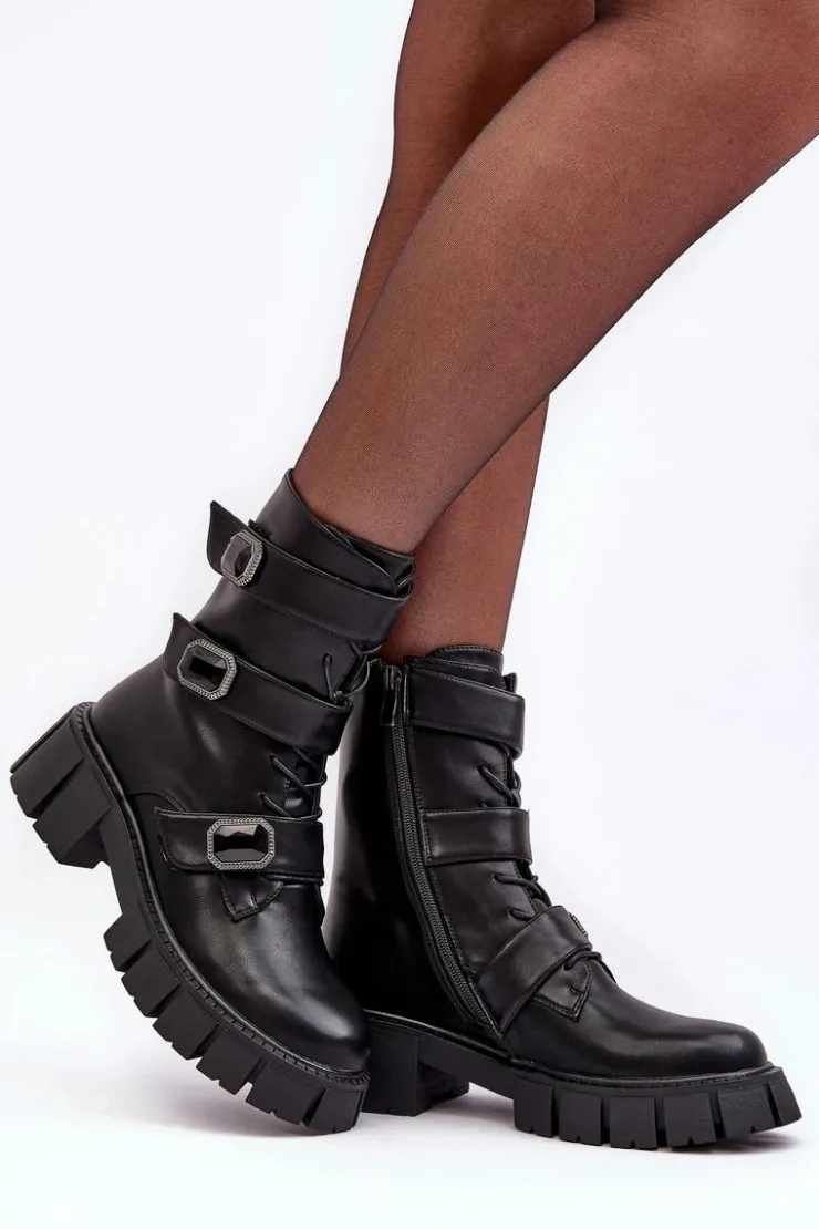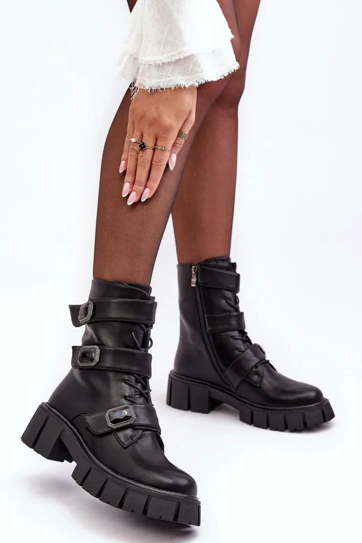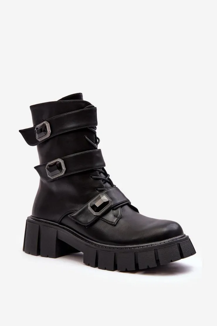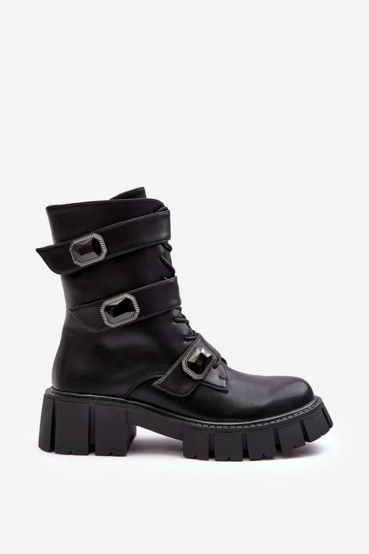 Damskie buty S.Barski Botki Ocieplane|Botki Sznurowane*Workery Botki Damskie Skórzane Czarne S.Barski MR870-62