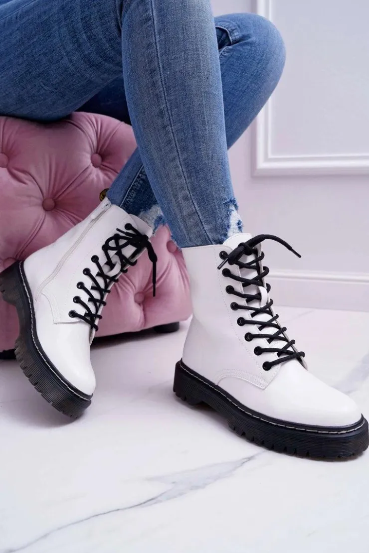 Damskie buty S.Barski Botki Sznurowane|Botki Zimowe Damskie*Damskie Botki Glany Workery Białe Barski 56-5