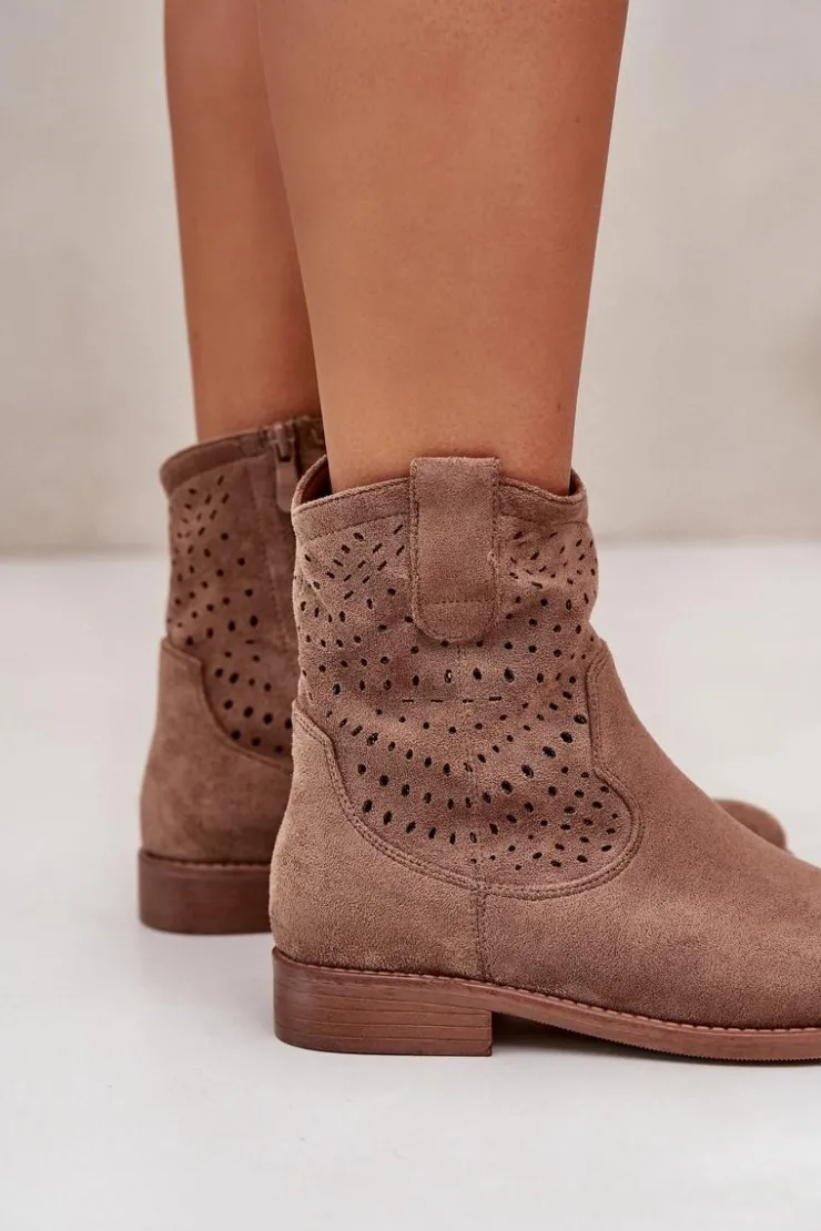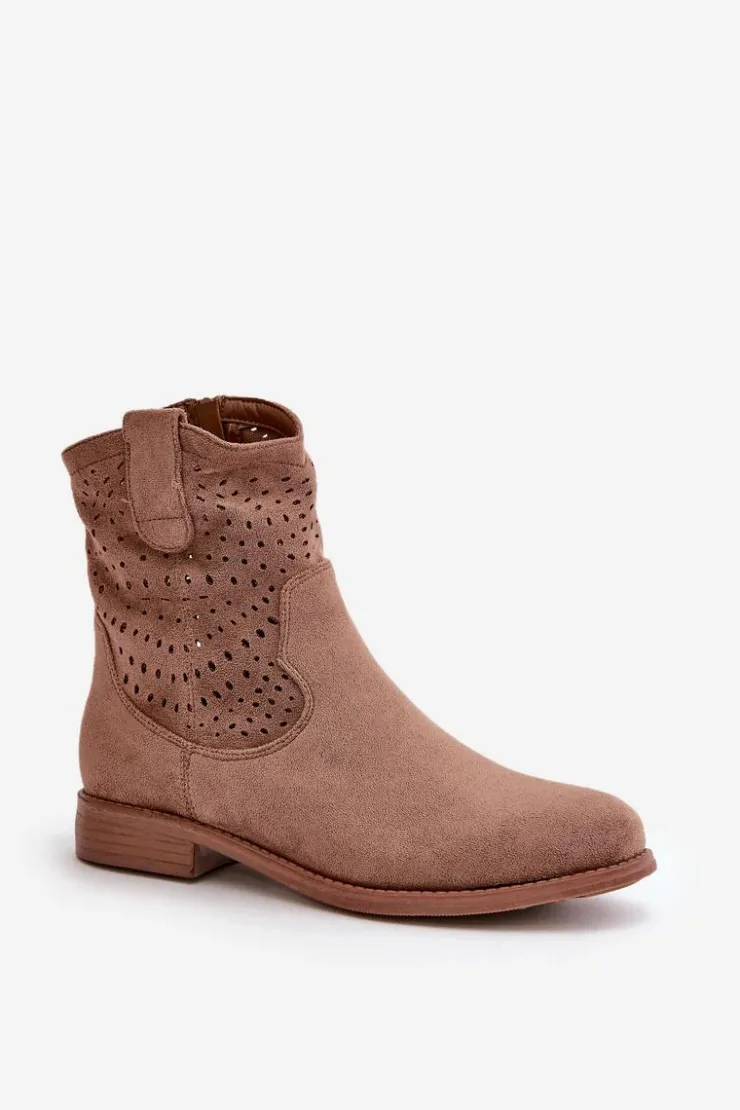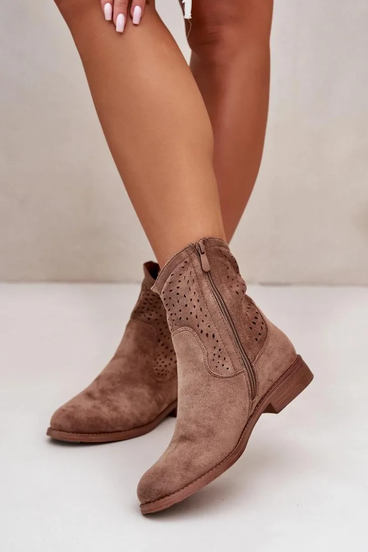Ażurowe botki damskie idealnie dopełnią niemalże każdą codzienną stylizację! Wykonane z eko zamszu. Osadzone na płaskim, stabilnym obcasie. Noski zaokrąglone. Cholewka przed kolano, zapinana na zamek. Dodatkowo model ten posiada usztywniany zapiętek. Koniecznie powinnaś je mieć! Przy wyborze rozmiaru prosimy sugerować się tabelą rozmiarów.