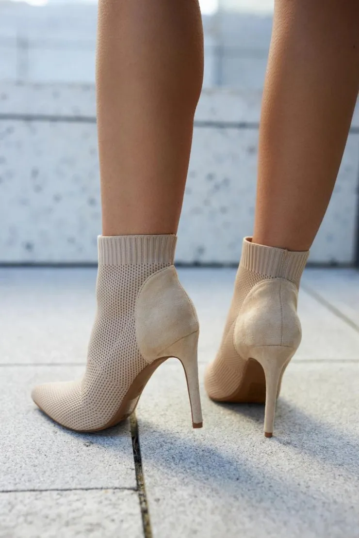 Botki posiadają stylową, skarpetkową cholewkę za kostkę. Osadzone na obcasie typu szpilka. Nosek w szpic świetnie wysmukli stopę. Model wsuwany, idealnie dopasuje się do nogi. Cholewka wykonana z połączenia elastycznego, prążkowanego materiału tekstylnego oraz zamszowej eko skóry. Wkładka z eko skóry. Buty posiadają usztywniany zapiętek. Idealne do do jeansów, joggerów czy dłuższych, koszulowych tunik.Przy wyborze rozmiaru prosimy sugerować się tabelą rozmiarów.