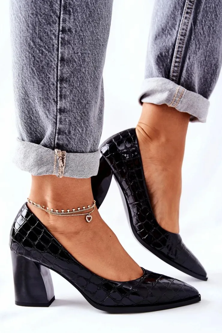 Eleganckie i niesamowicie wygodne czółenka. Buty wykonane są ze skóry ekologicznej. Posiadają wkładkę ze skóry naturalnej. Faktura skóry krokodyla. Przy wyborze rozmiaru prosimy sugerować się tabelą rozmiarów.