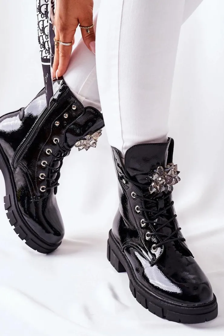 Clearance Boto Damskie Skórzane Klapki Z Ozdobą Czarne Roysa