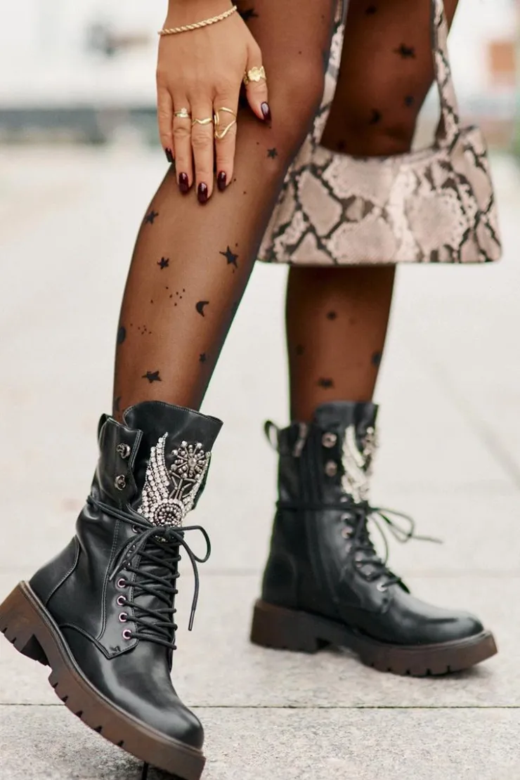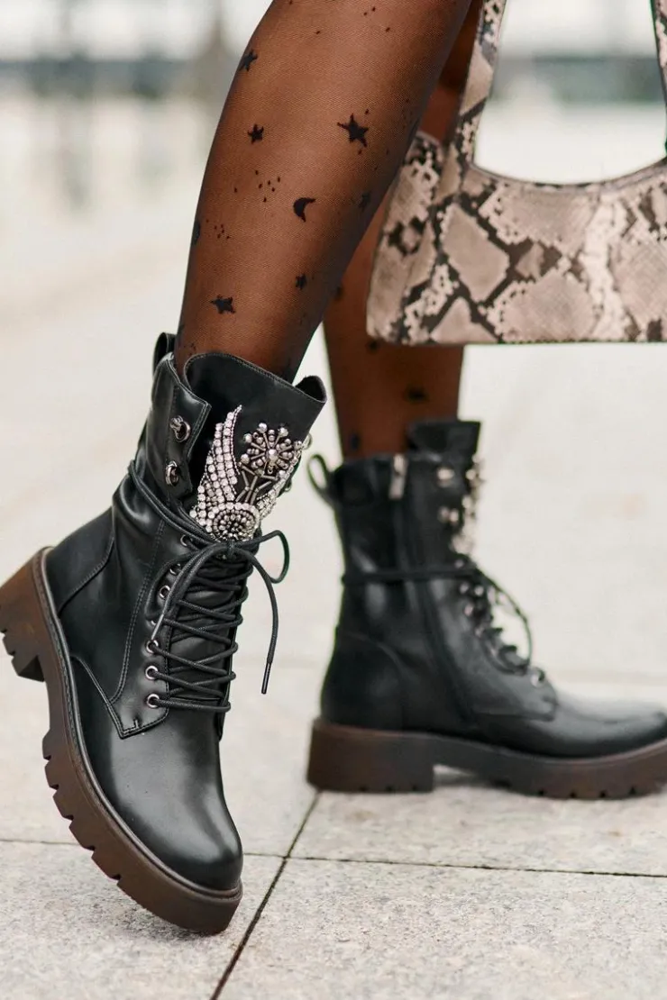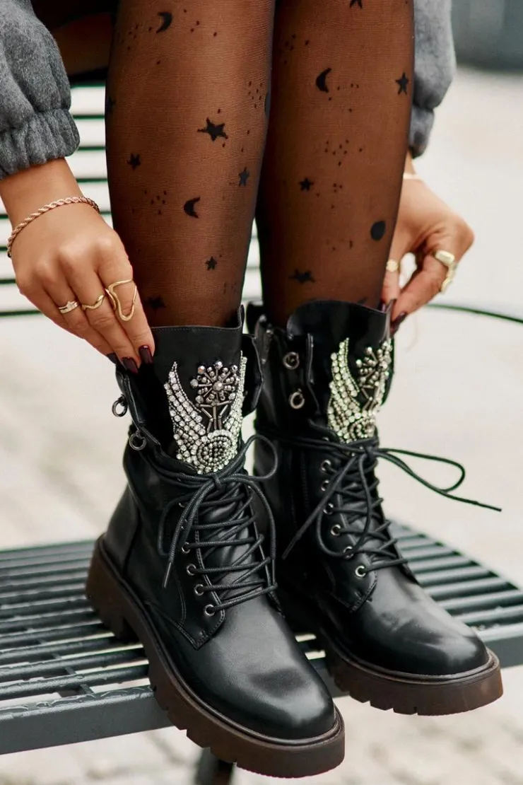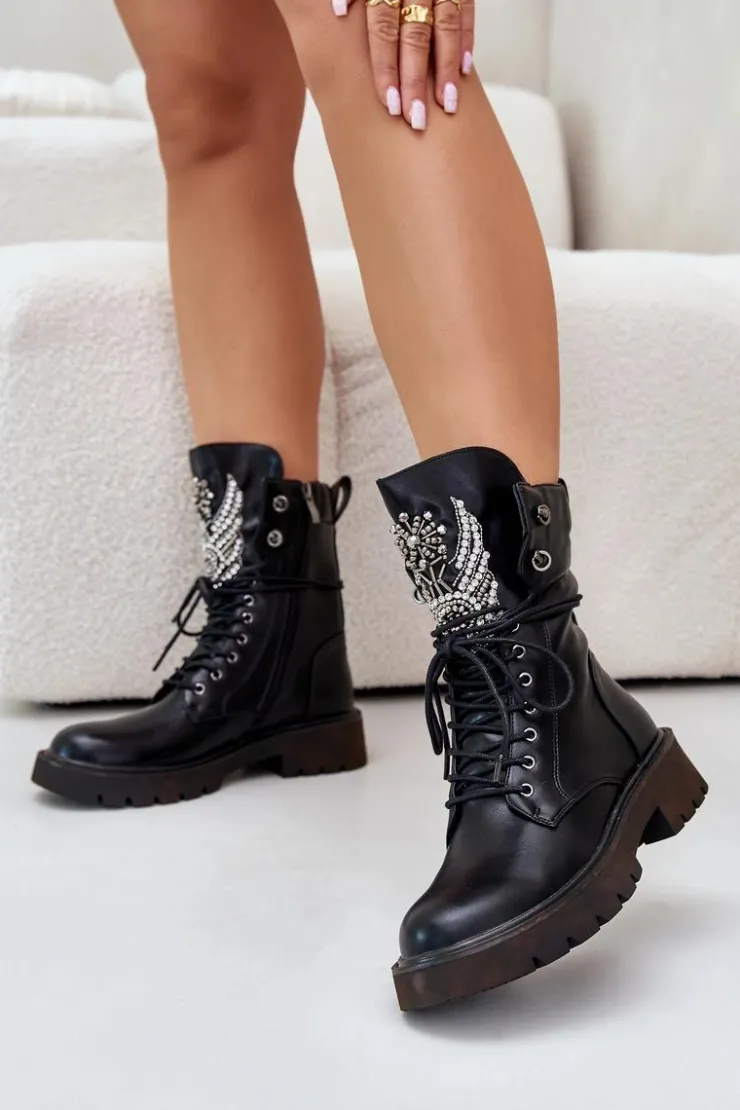 Damskie buty S.Barski Eko Skórzane Botki Workery Ze Zdobieniem Ocieplane D&A MR880-080 Czarne