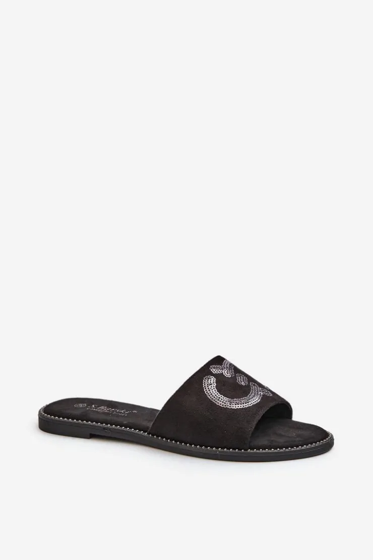 Damskie buty S.Barski Klapki Damskie Klasyczne*Damskie Płaskie Klapki Z Cekinami S.Barski KV27-052 Czarne Czarny
