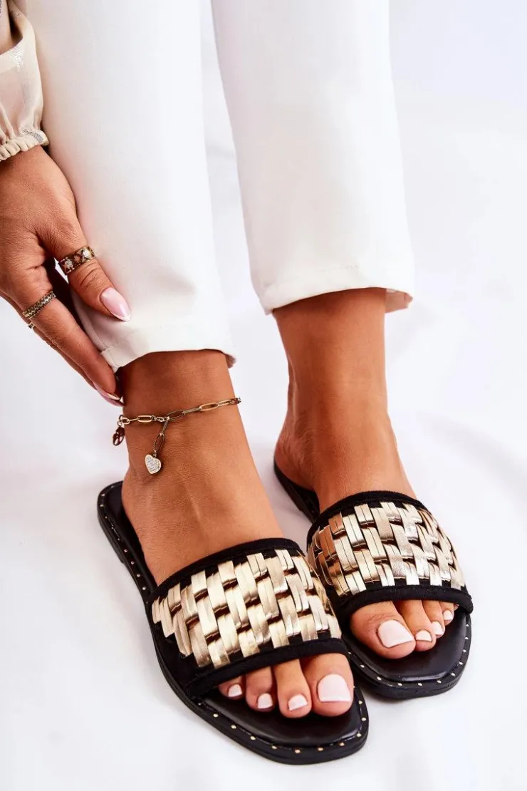 Damskie buty S.Barski Klapki Damskie Klasyczne*Damskie Skórzane Klapki Na Płaskim Obcasie Czarne Hollis
