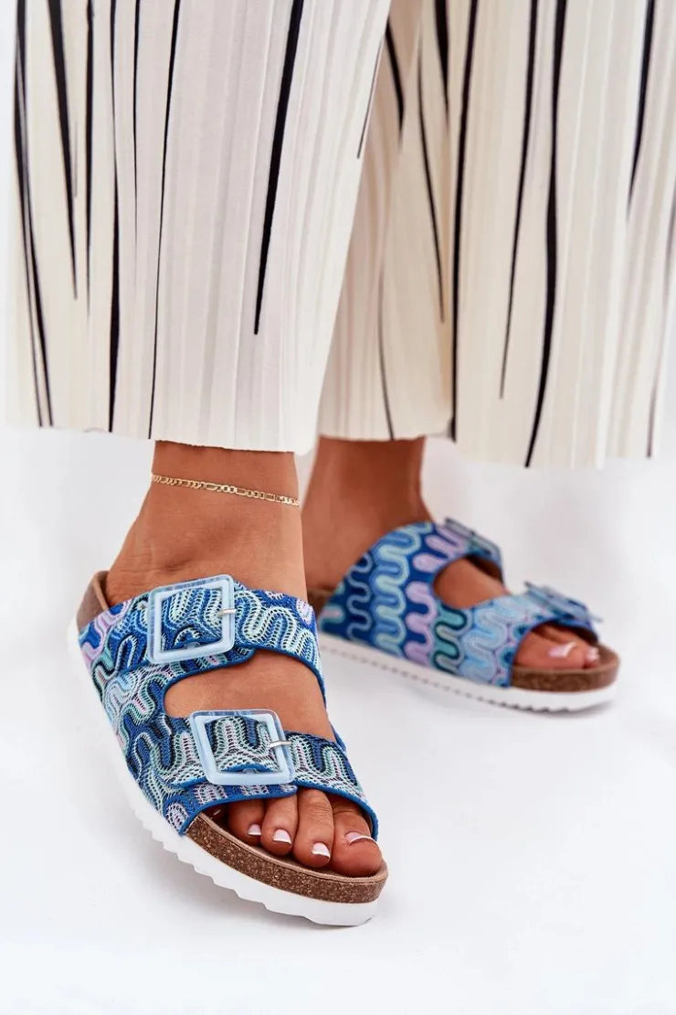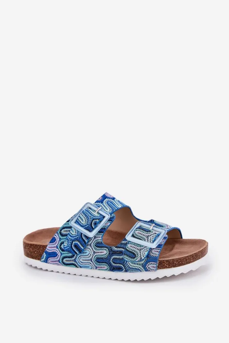 Damskie buty S.Barski Klapki Korkowe|Klapki Na Platformie*Klapki Damskie Z Klamrami I Brokatem S.Barski RB51-006 e Niebieski