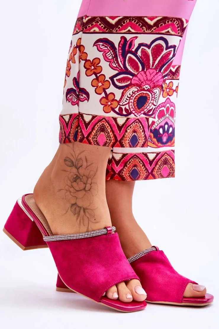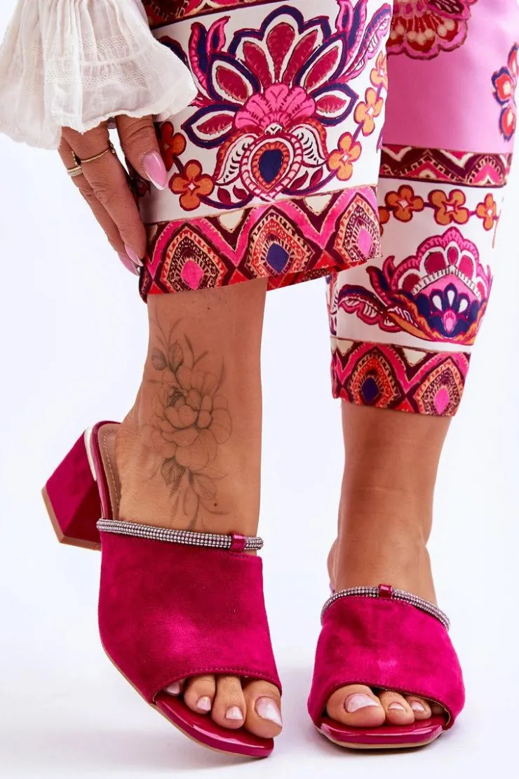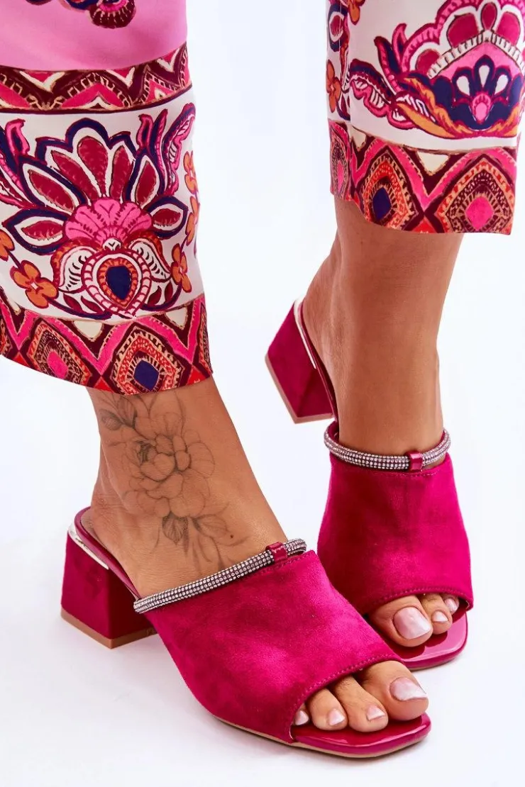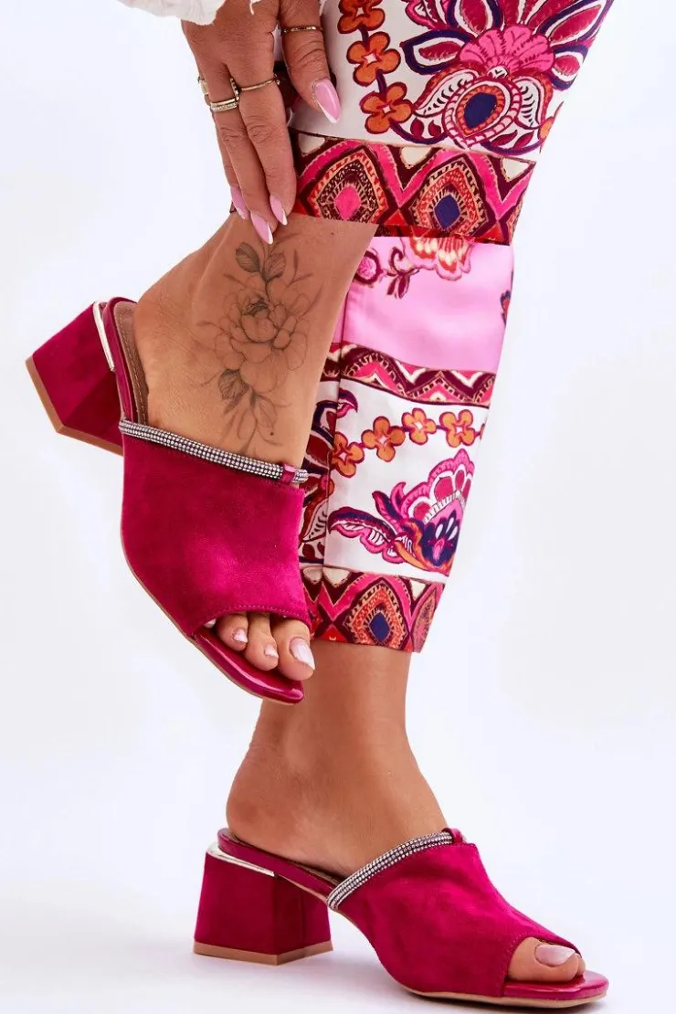Damskie buty S.Barski Klapki Na Obcasie|Klapki Damskie Klasyczne*Zamszowe Klapki Na Obcasie S.Barski KV-612-2 Fuksja Różowy