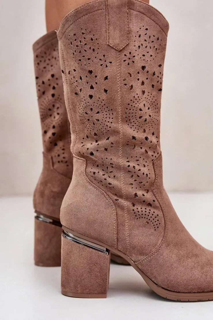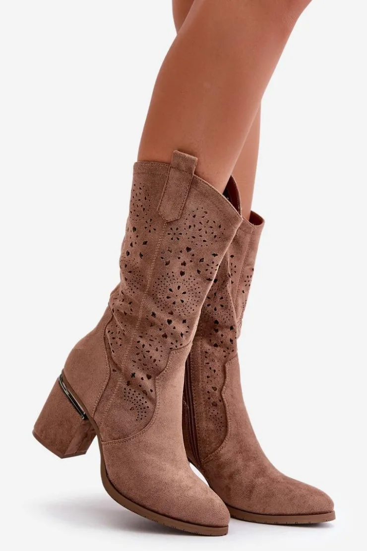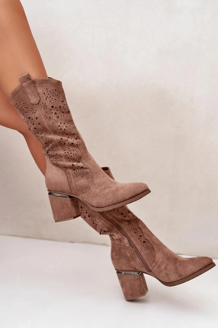 Kozaki damskie od marki S.Barski. Cholewka jest wykonana z przyjemnego w dotyku eko zamszu, co zapewnia elegancki wygląd i wygodę noszenia. Usztywniony zapiętek gwarantuje stabilność i trwałość obuwia. Kozaki osadzone są na słupkowym obcasie, który dodaje im szyku i elegancji. Wkładka z eko skóry podnosi komfort noszenia. Model ten jest praktyczny dzięki bocznemu suwakowi, który ułatwia zakładanie i zdejmowanie butów. Te kozaki to doskonały wybór dla każdej kobiety ceniącej sobie styl i wygodę. Przy wyborze rozmiaru prosimy sugerować się tabelą rozmiarów.