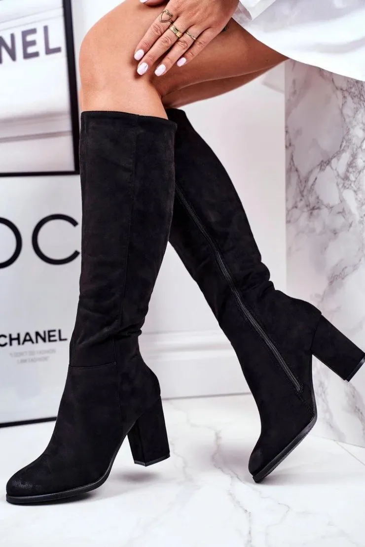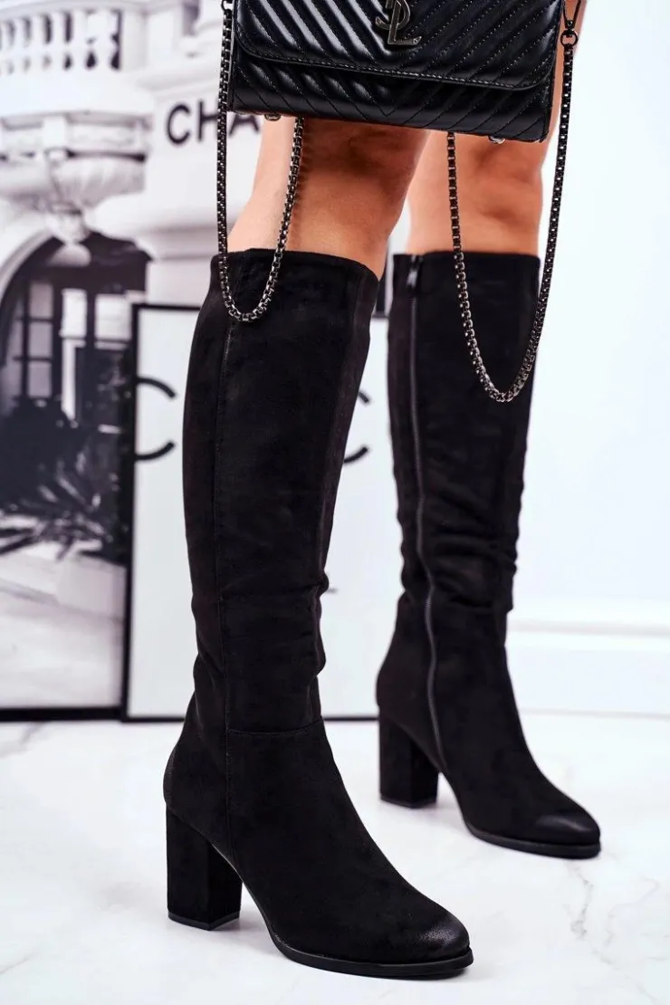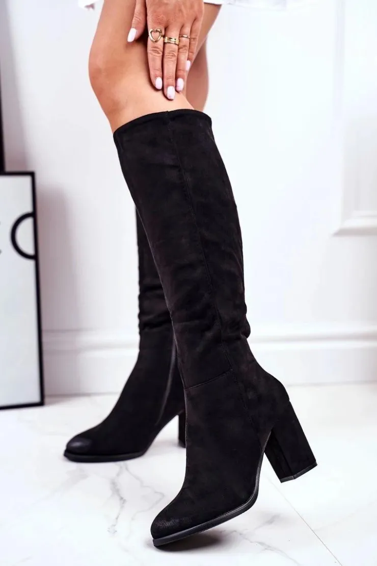 Damskie buty S.Barski Kozaki Na Obcasie|Kozaki Zamszowe*Kozaki Damskie Na Słupku Zamszowe Czarne Many Times