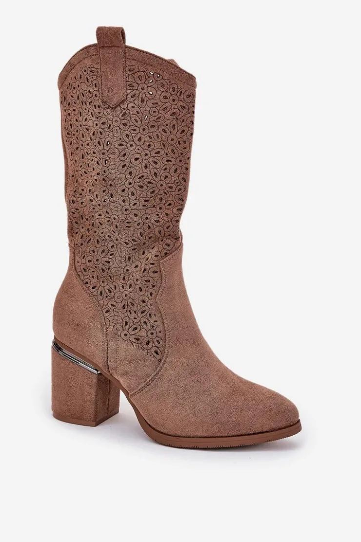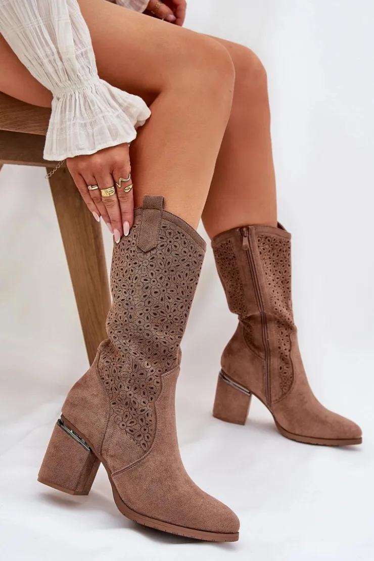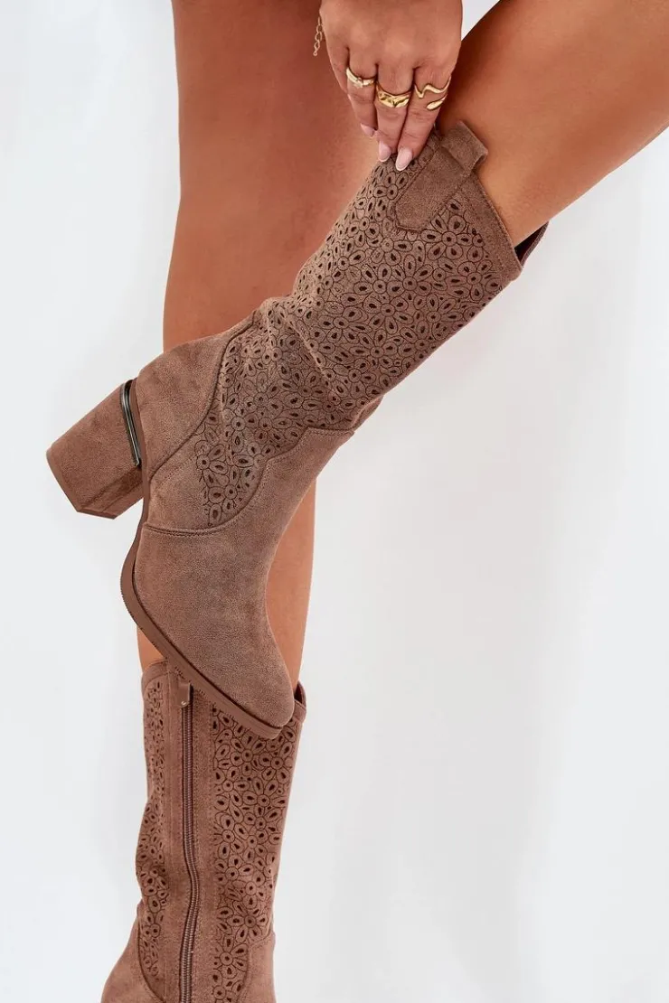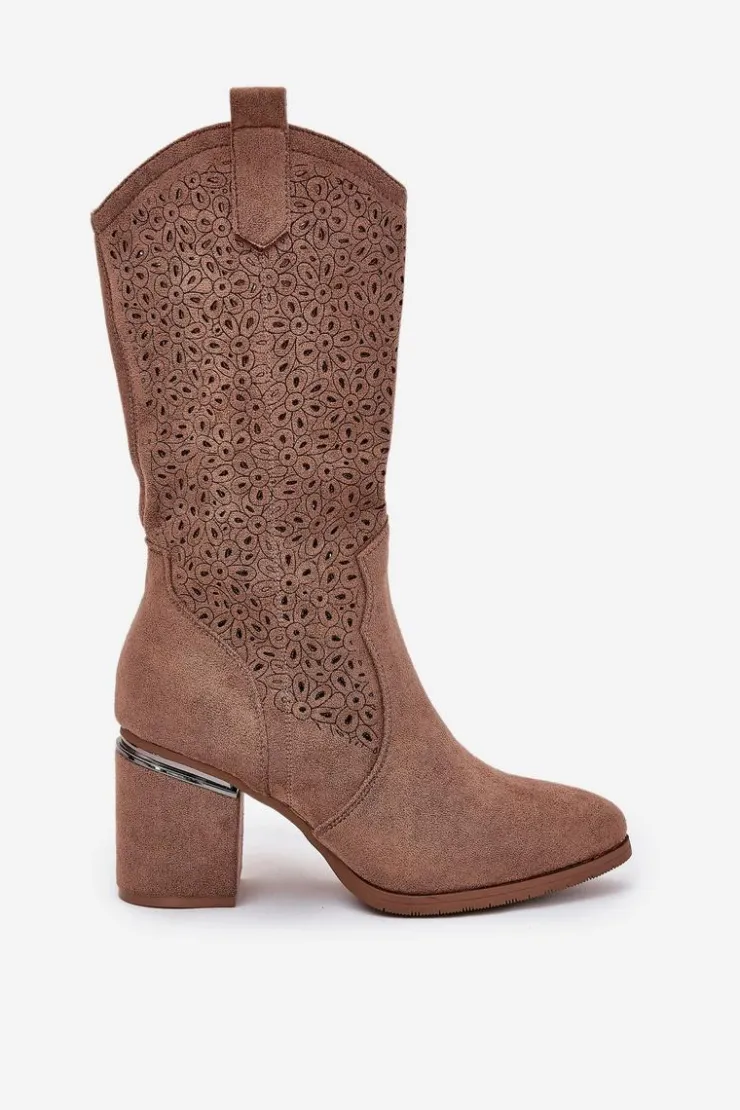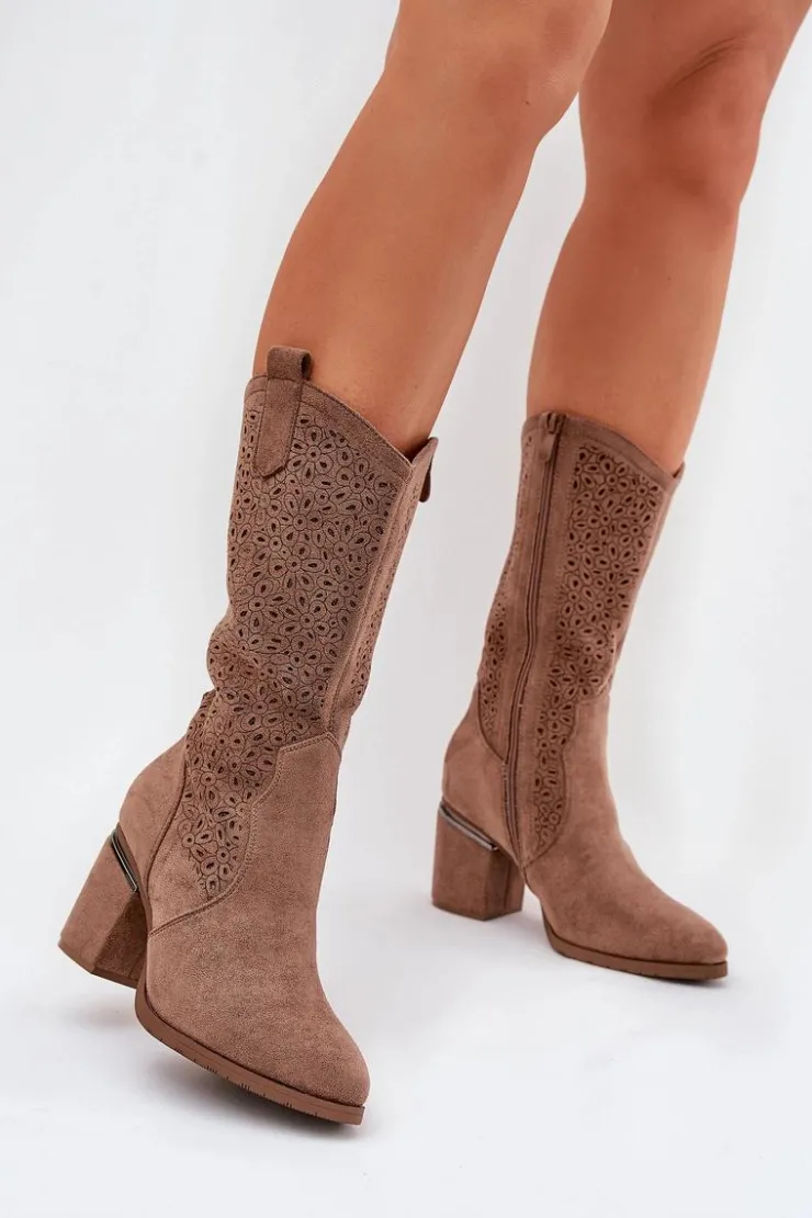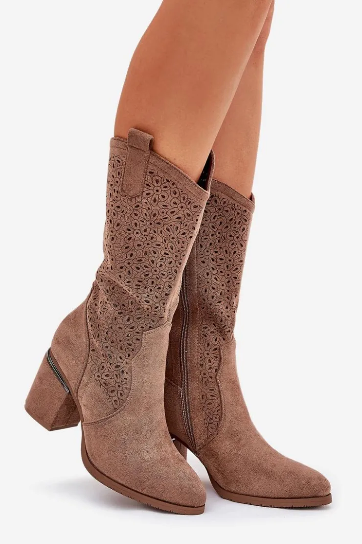 Damskie kozaki od marki S.Barski. Cholewka wykonana z delikatnego eko zamszu, zapewnia obuwiu elegancję oraz komfort użytkowania. Usztywniony zapiętek zwiększa stabilność i trwałość butów. Kozaki zostały osadzone na słupkowym obcasie, który dodaje im klasy i stylu. Wkładka z eko skóry podnosi poziom wygody podczas noszenia. Model ten charakteryzuje się praktycznością dzięki bocznemu suwakowi, który ułatwia zakładanie i zdejmowanie obuwia. Te kozaki są idealnym wyborem dla kobiet, które cenią sobie elegancję i komfort. Przy wyborze rozmiaru prosimy sugerować się tabelą rozmiarów.