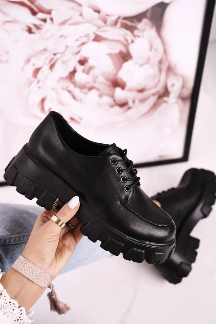 Damskie buty S.Barski Półbuty Lakierowane*Damskie Półbuty Oxfordy Na Masywnej Platformie S.Barski HX23 Czarne
