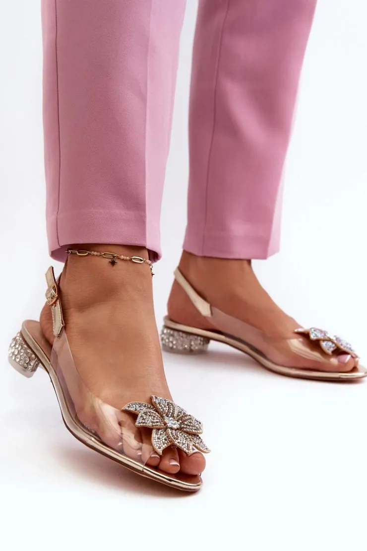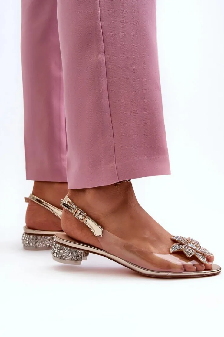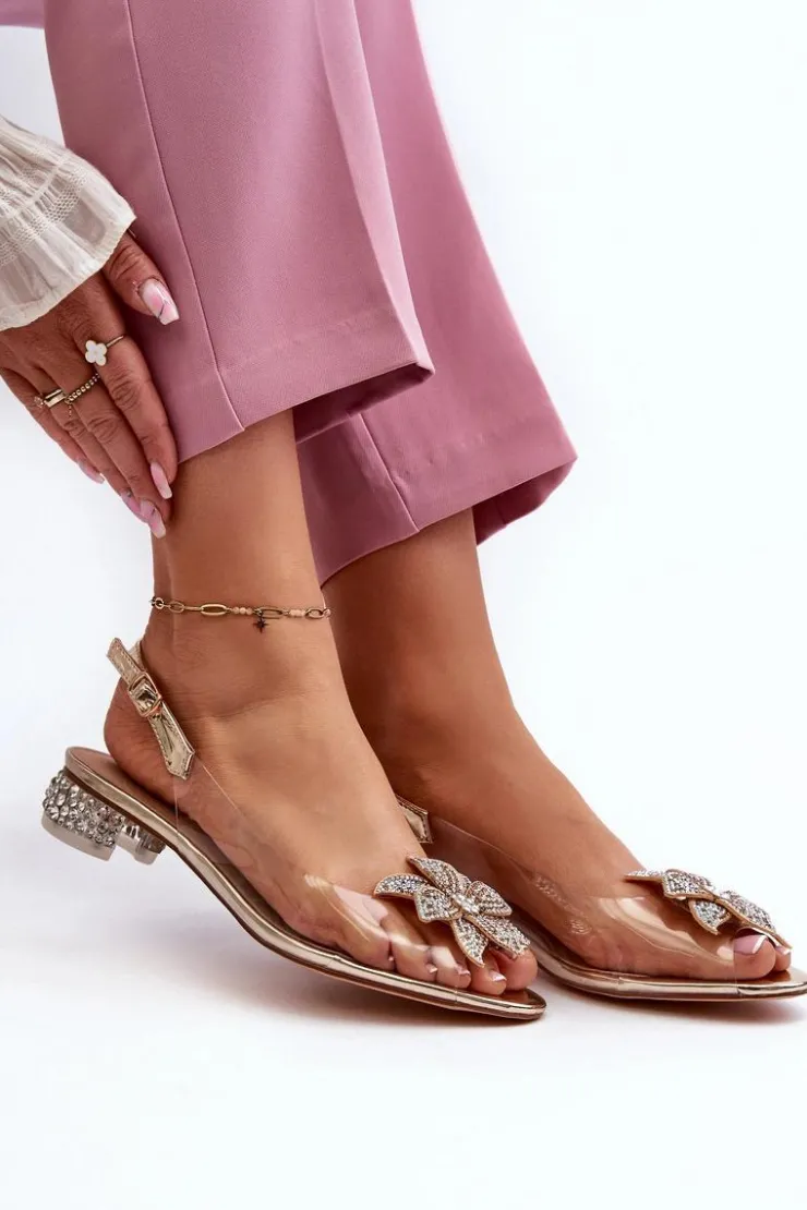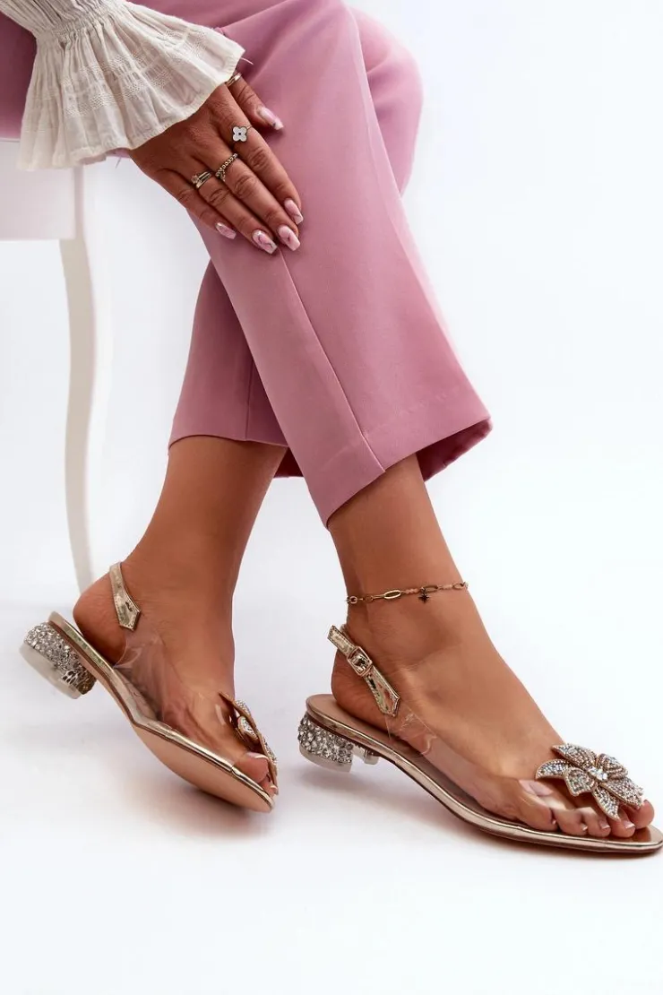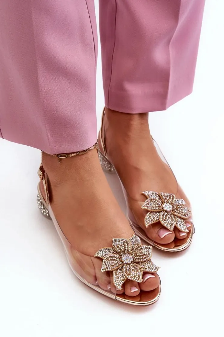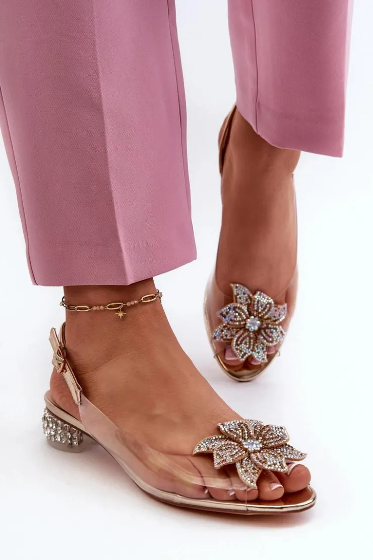 Stylowe sandały z transparentną cholewką to prawdziwy hit! Osadzone na niskim obcasie ozdobionym cyrkoniami. Zapinane na regulowany pasek ze sprzączką. Wkładka ze skóry naturalnej jest miękka i wygodna. Z przodu ozdobny kwiatek. Idealne na różne uroczystości oraz wieczorne wyjścia! Przy wyborze rozmiaru prosimy sugerować się tabelą rozmiarów.