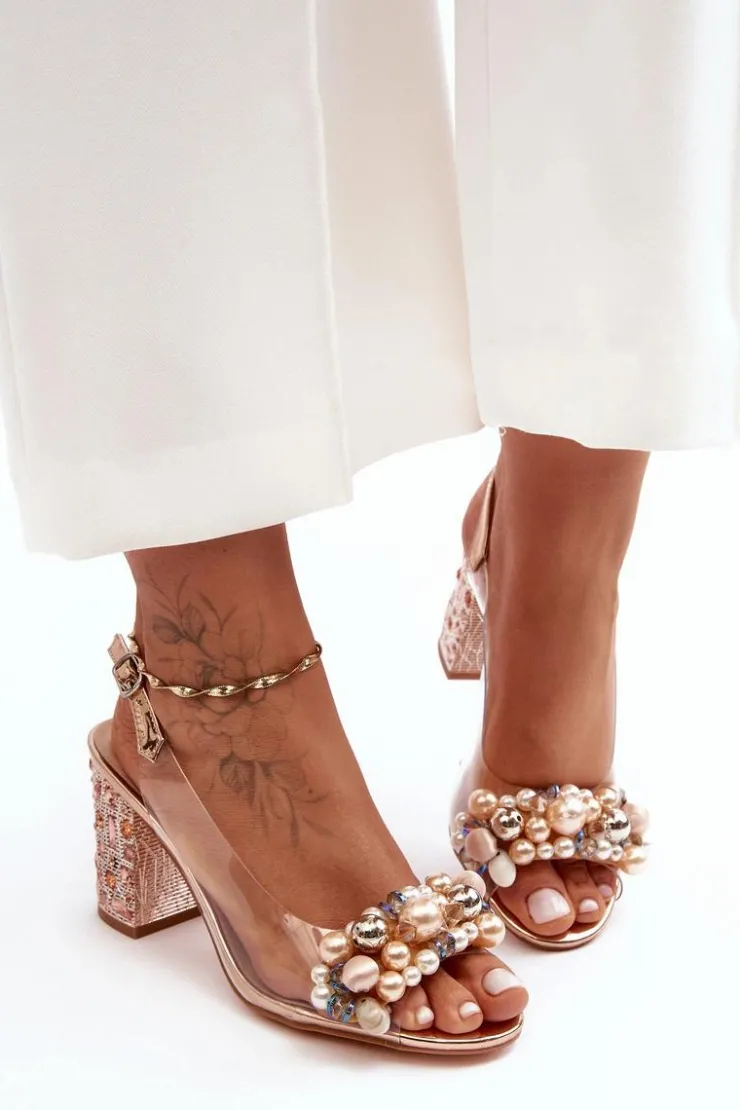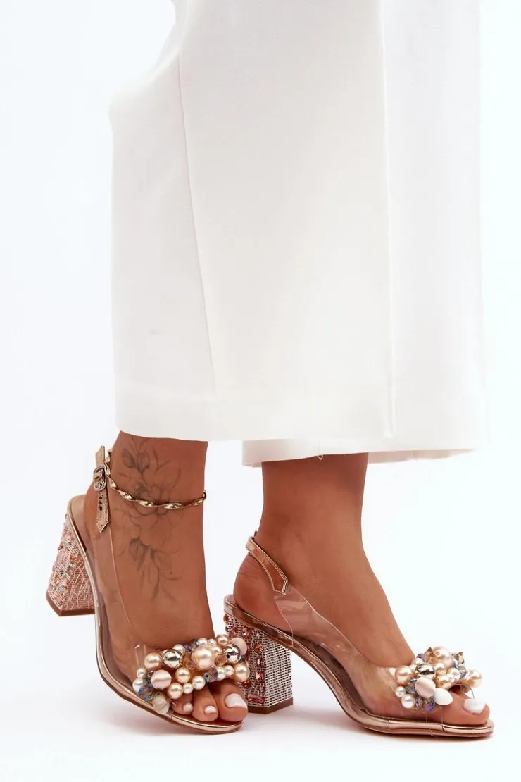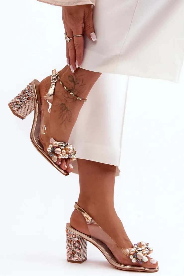 Stylowe sandały z transparentną cholewką zostały osadzone na błyszczącym, zdobionym obcasie. Miękka i profilowana wkładka wykonana ze skóry naturalnej. Z przodu na pasku znajdują się liczne zdobienia w postaci koralików. Ten modny fason sprawdzi się w wielu stylizacjach! Przy wyborze rozmiaru prosimy sugerować się tabelą rozmiarów.