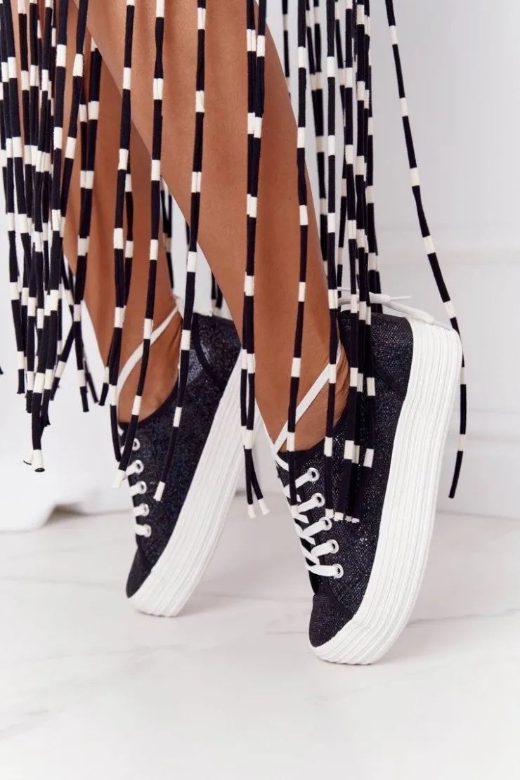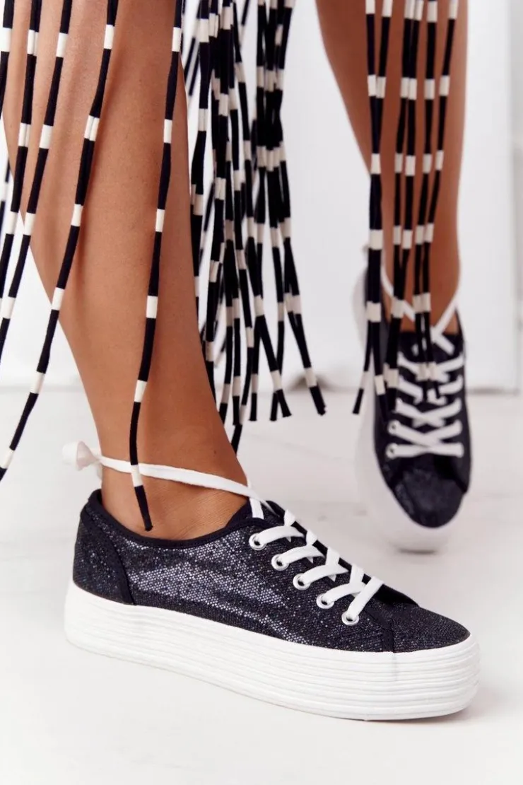 Damskie tenisówki na platformie ozdobione kolorowym brokatem. Tenisówki posiadają miękką, materiałową wkładkę oraz antypoślizgową podeszwę. Przy wyborze rozmiaru prosimy sugerować się tabelą rozmiarów.