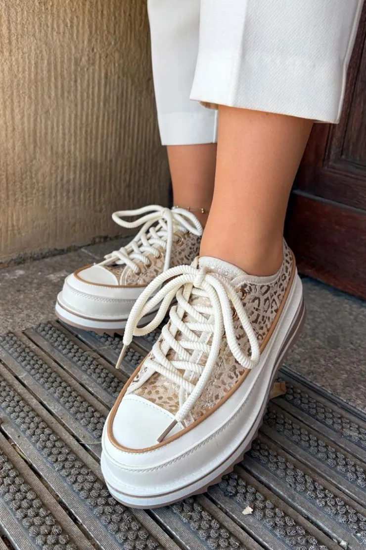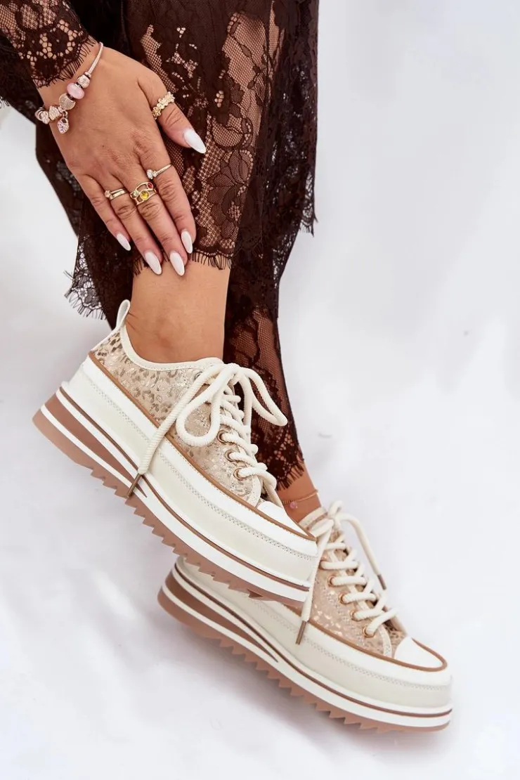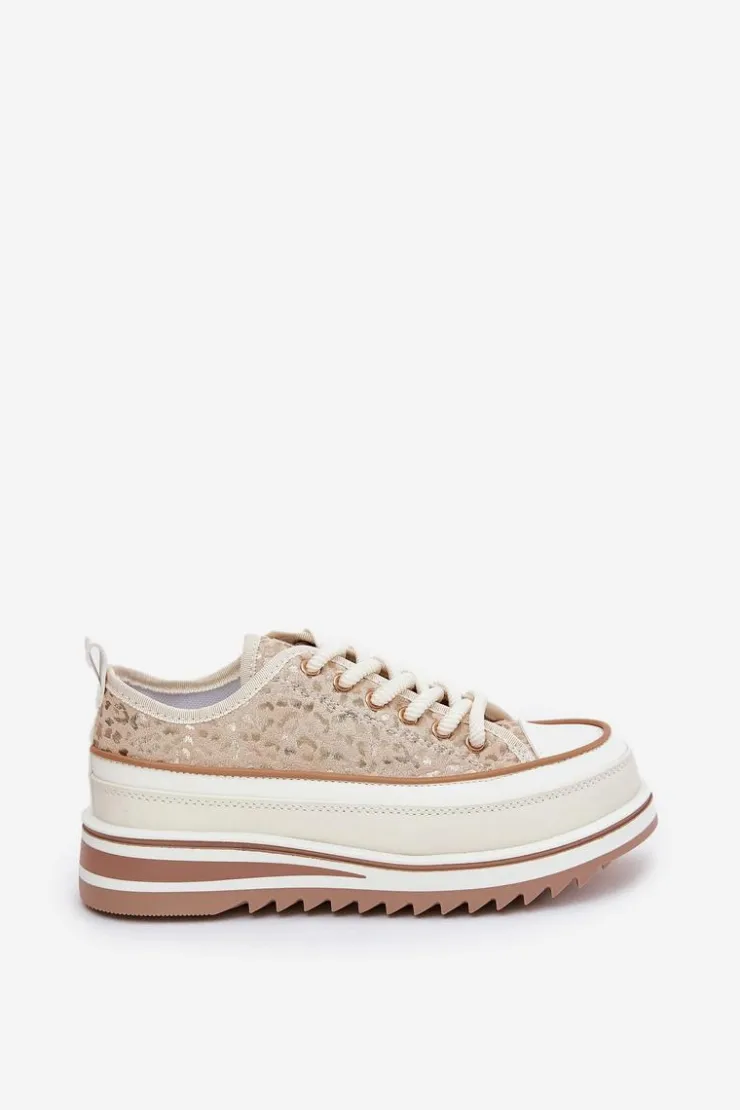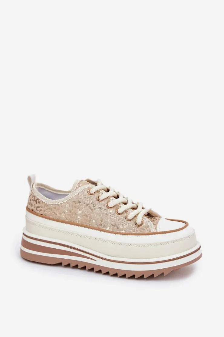 Trampki damskie wykonane z materiału tekstylnego. Osadzone na masywnej platformie, która wysmukli sylwetkę. Model z grubszym sznurowaniem, co dodaje im wyjątkowego charakteru. Miękka wkładka zapewnia komfort i amortyzację na każdym kroku. Doskonałe do codziennych stylizacji, te trampki oferują zarówno styl, jak i funkcjonalność. Przy wyborze rozmiaru prosimy sugerować się tabelą rozmiarów.