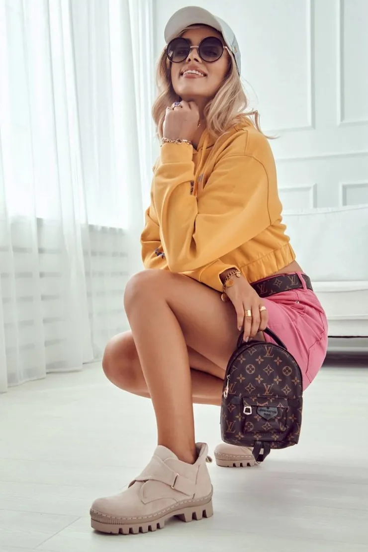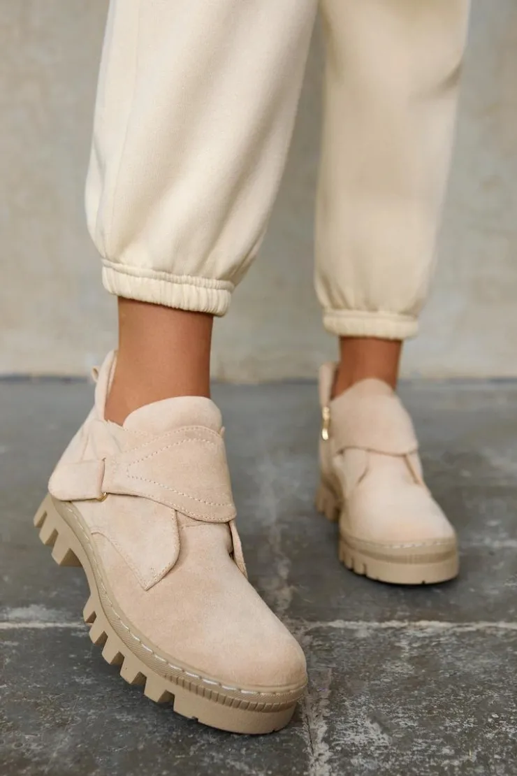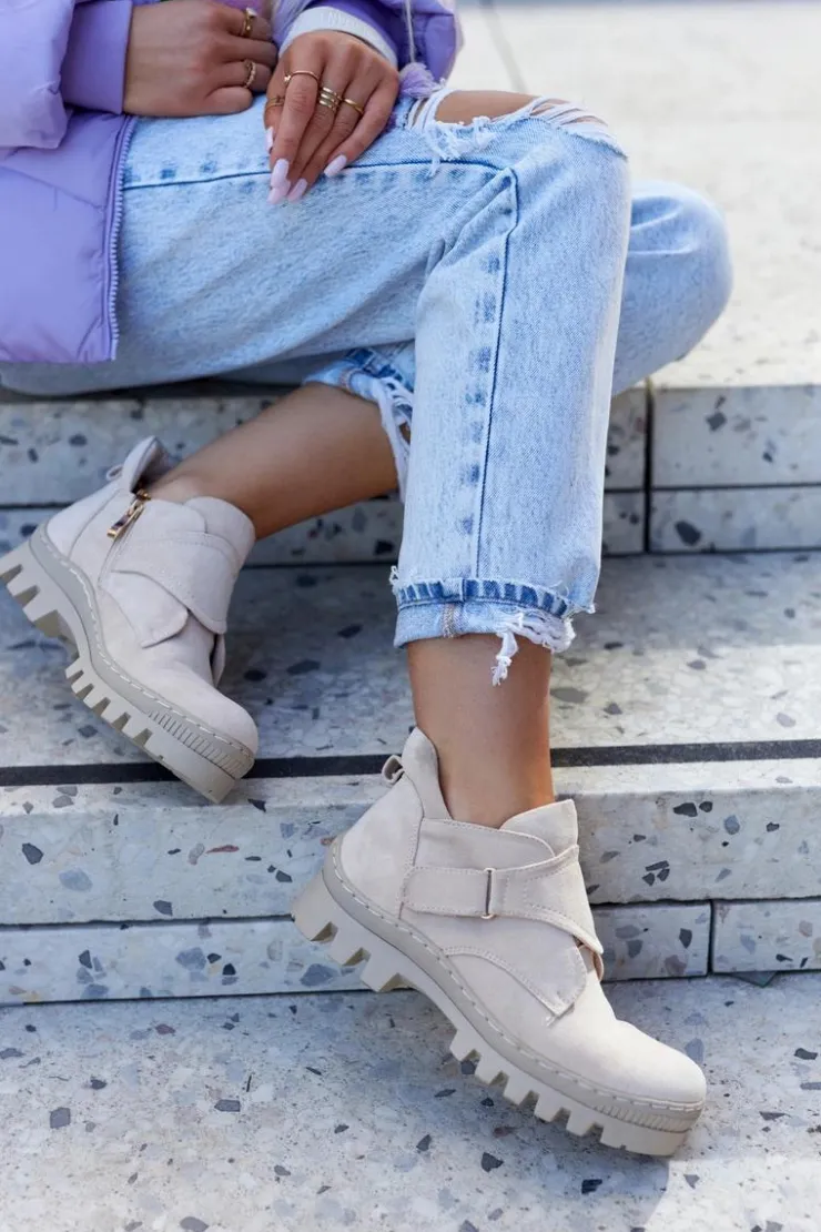 Damskie buty S.Barski Zamszowe Wiosenne Botki Trapery Na Suwak Jasnobeżowe Remgate