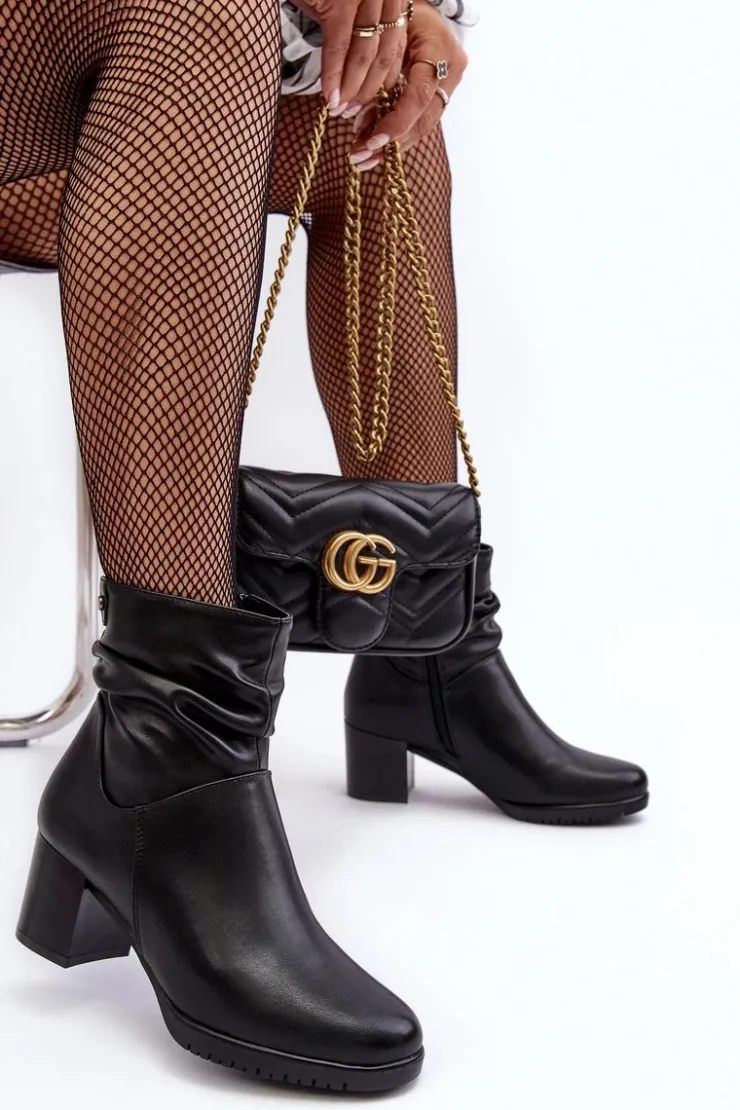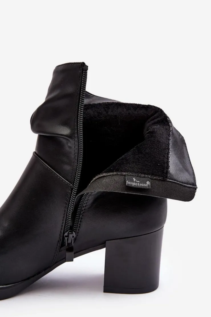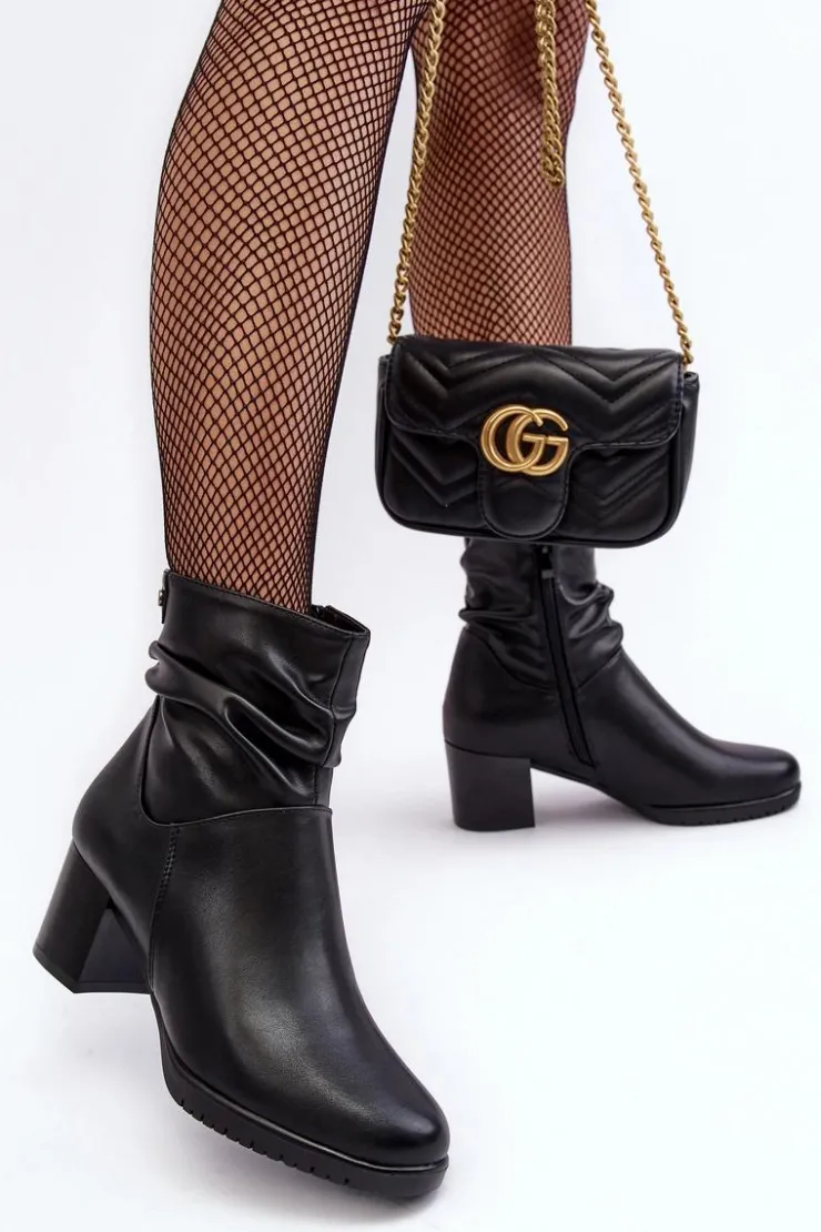 Damskie Buty Sergio Leone Damskie Marszczone Botki Na Słupku Czarne Liriam