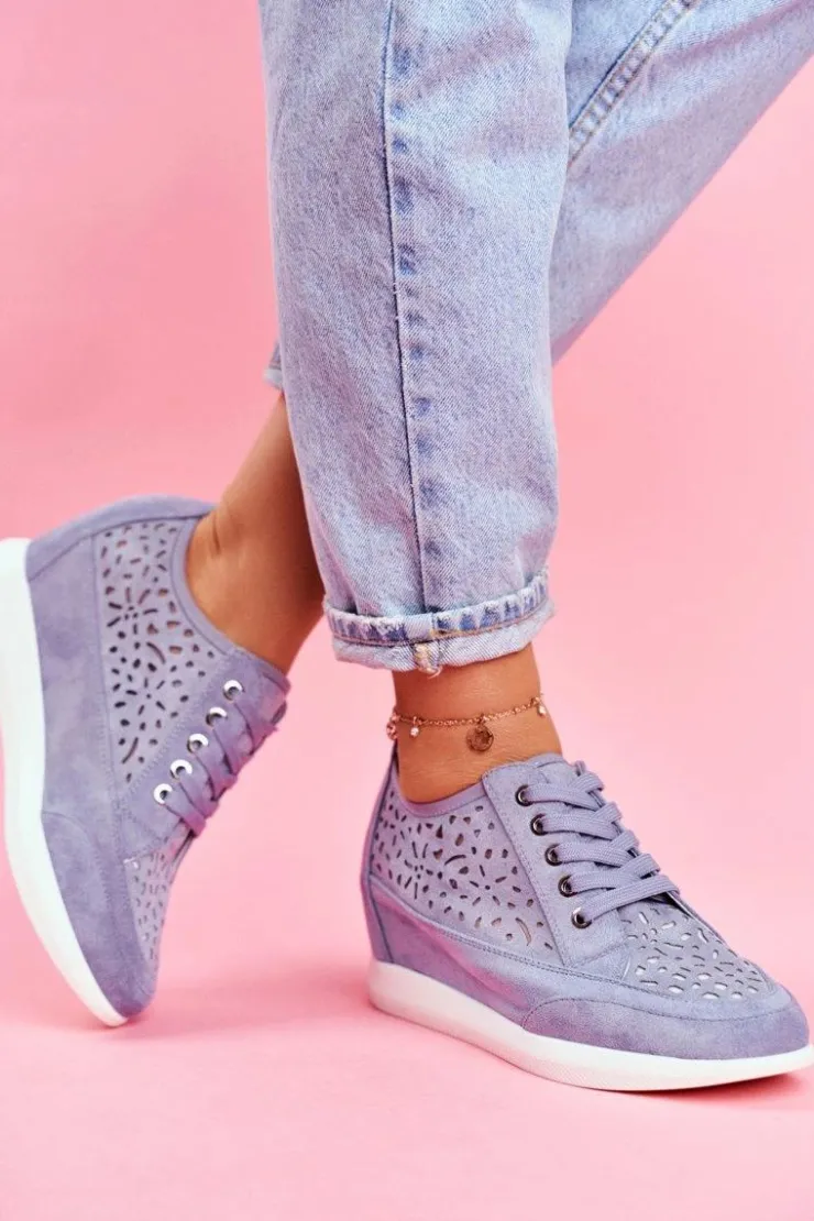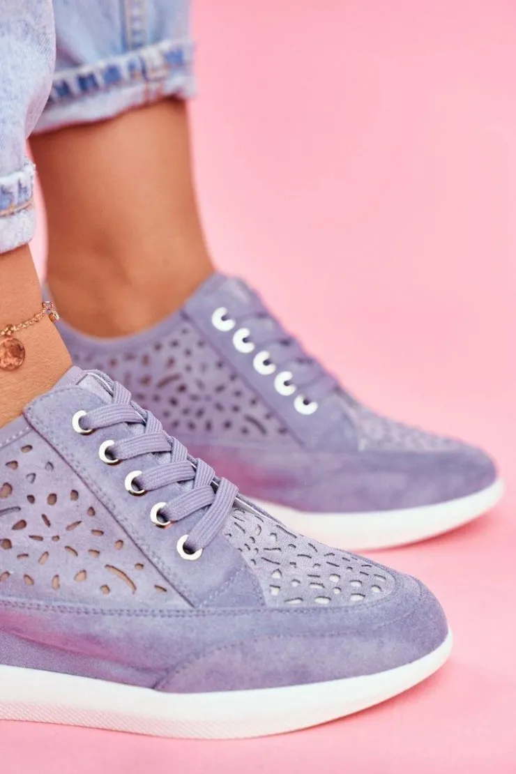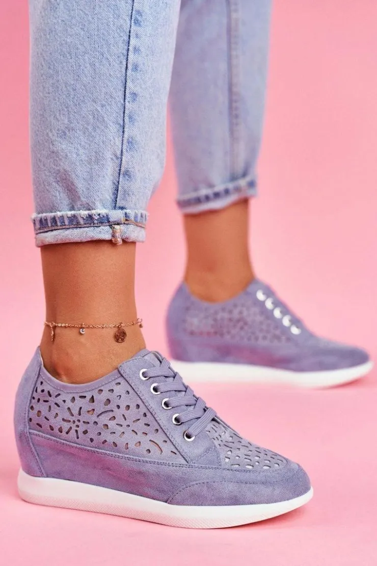Damskie Buty Sergio Leone Sneakersy Damskie Sergio Leone Ażurowe Niebieskie PB122